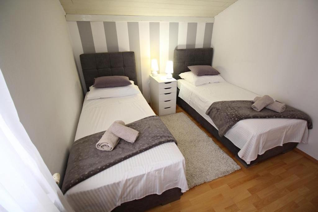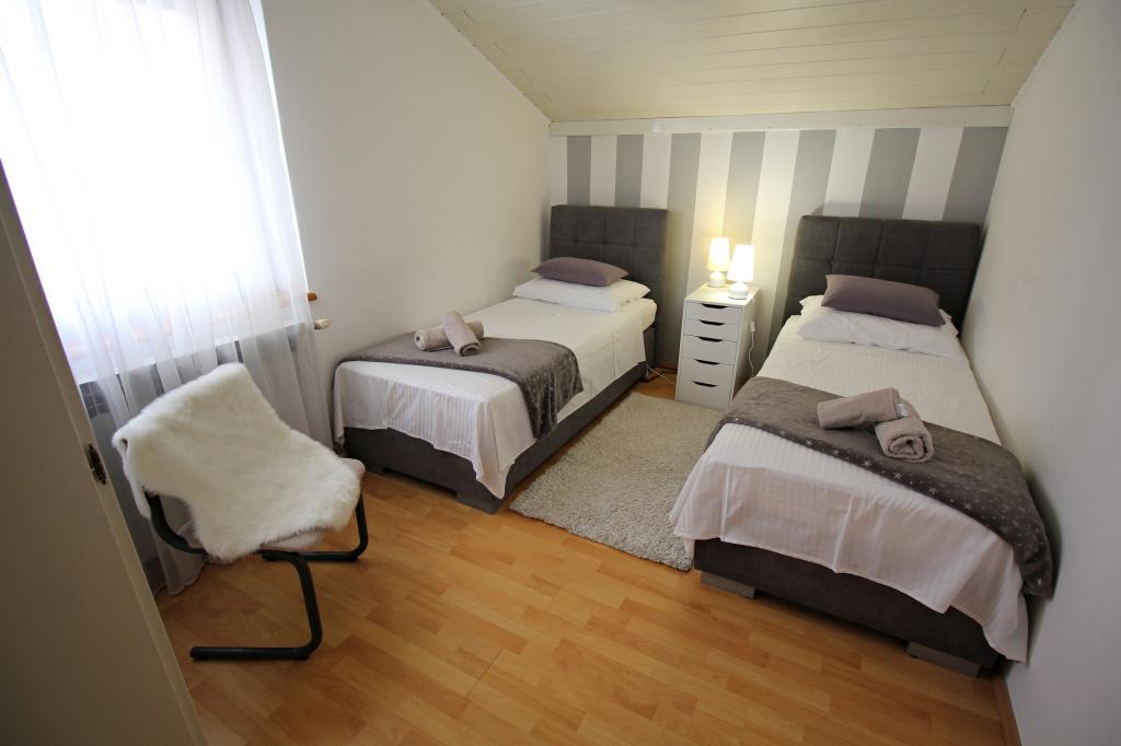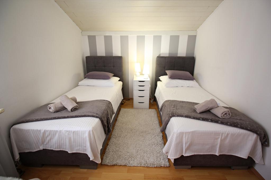 Appartement Neda ligt in Zadar, district Borik. We bevinden ons op 10 minuten lopen van het strand van Ukok. Het zandstrand van Borik (Falkensteiner) ligt op 15 minuten loopafstand. het is 25 minuten lopen naar het stadscentrum. Het appartement is volledig gemeubileerd en heeft een mooi terras met uitzicht over de stad en de zee. Het appartement is gelegen op de zolder van de gezinswoning en is te bereiken via een gemeenschappelijke gang.