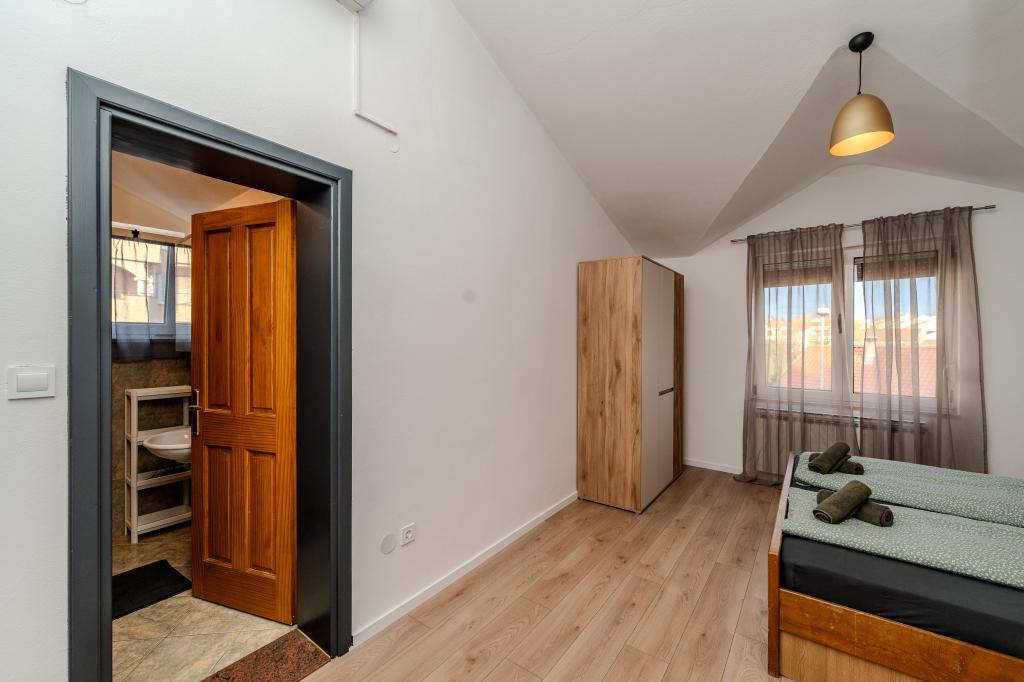 De appartementen bevinden zich in een rustige wijk van Zadar, in Belafuža. Ze liggen op de tweede verdieping van een eengezinswoning. De locatie is zeer praktisch: alle belangrijke voorzieningen zoals winkels, restaurants, cafés en openbaar vervoer zijn vlakbij, terwijl het stadscentrum gemakkelijk te bereiken is. Onze appartementen bieden alles wat u nodig heeft voor een aangenaam verblijf, of u nu met familie, partner of vrienden komt. We kijken uit naar uw komst!