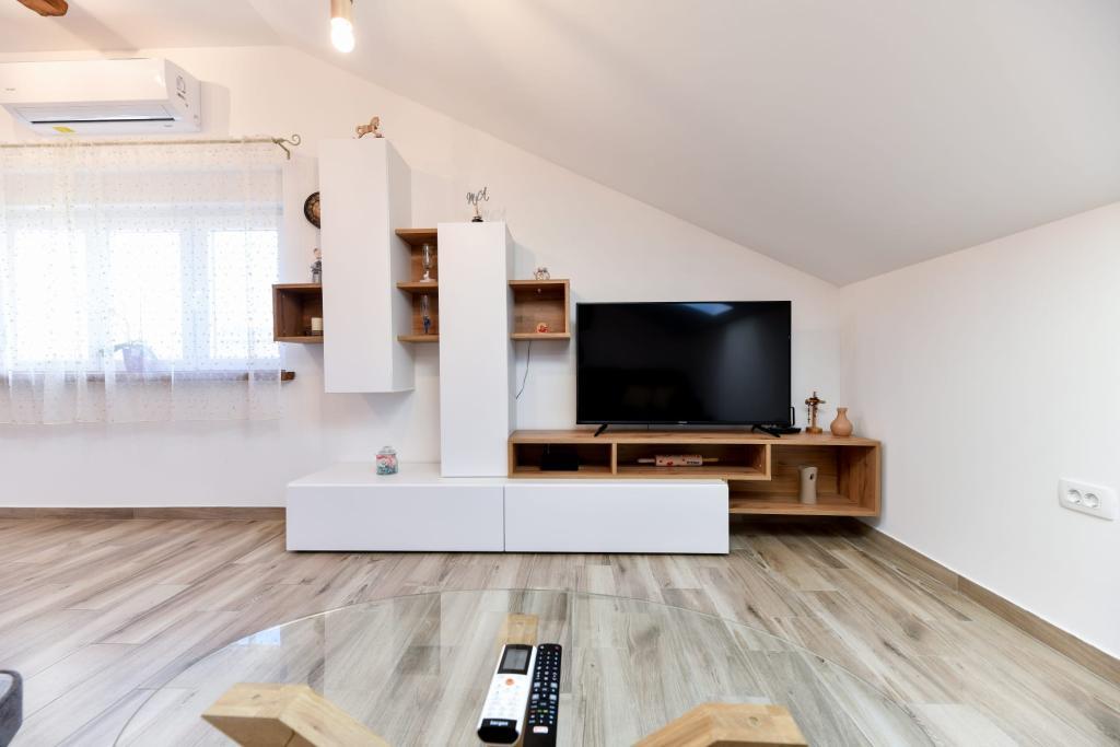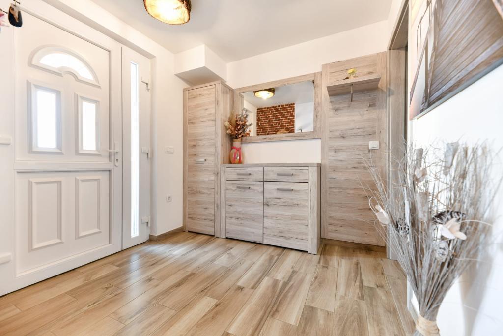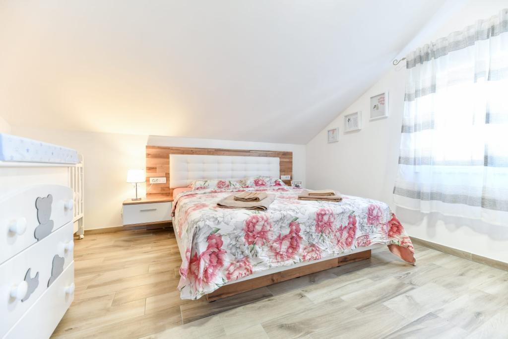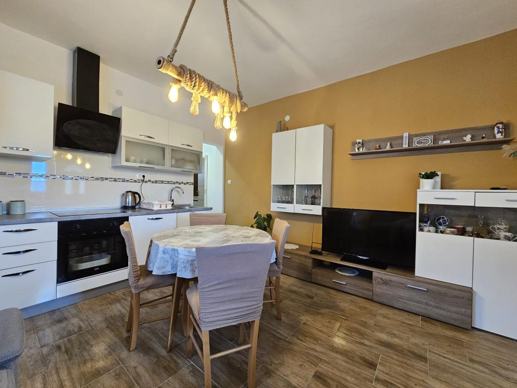 Appartement CVITA is gelegen in een eengezinswoning in een rustige en verhoogde omgeving en is ideaal voor koppels en gezinnen met kinderen. Het volledig en modern ingerichte appartement bestaat uit twee slaapkamers, een badkamer en een grote woonkamer, keuken en eetkamer met uitzicht. Het appartement is comfortabel om in te verblijven, voorzien van airconditioning en het terras is ideaal om uw favoriete drankje te drinken met uitzicht en een idyllische zonsondergang. Een buitengrill is bij het appartement inbegrepen en ze kunnen deze gebruiken. Parkeren is mogelijk op het erf voor het huis. Gratis WiFi en smart-tv zijn ook beschikbaar. In de directe omgeving is er een winkel, kruidenier, bank, postkantoor en andere voorzieningen. Het ligt op 5 minuten rijden van het strand van Kolovare met de auto. We verheugen ons op uw komst.