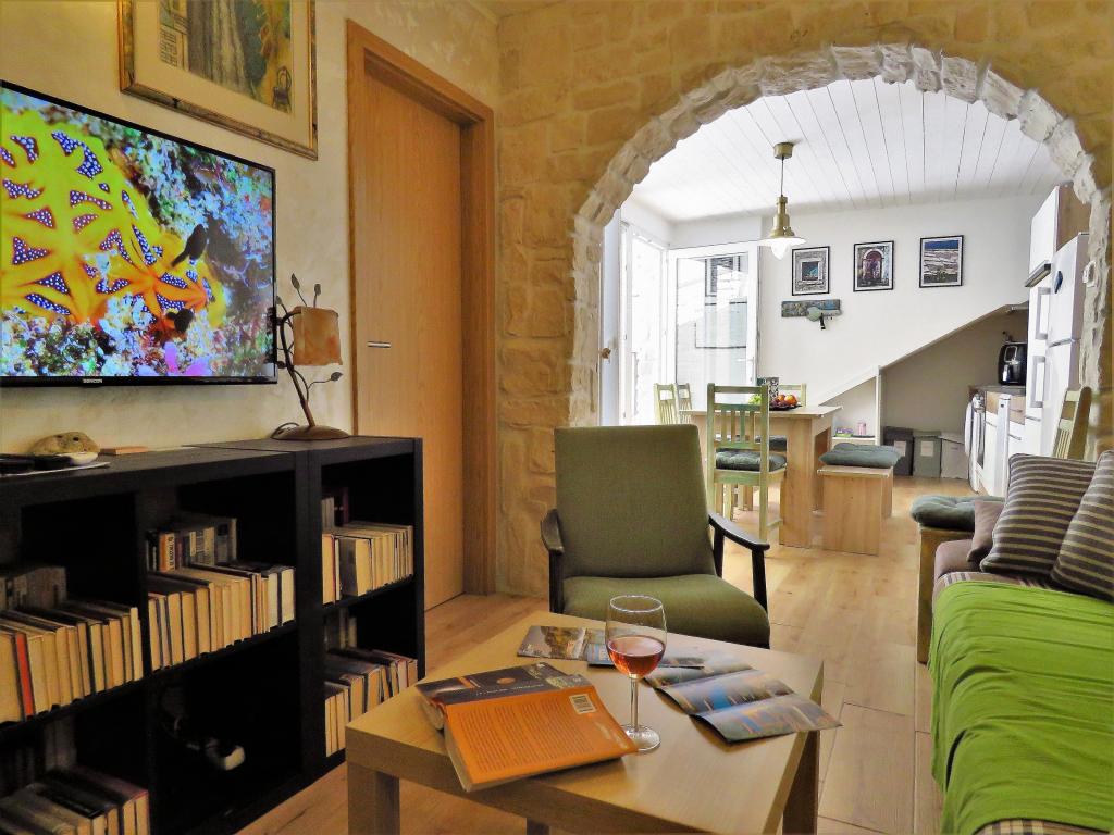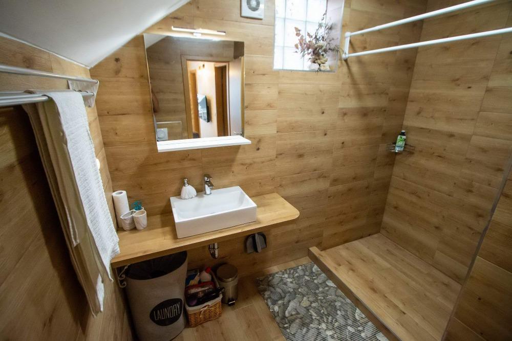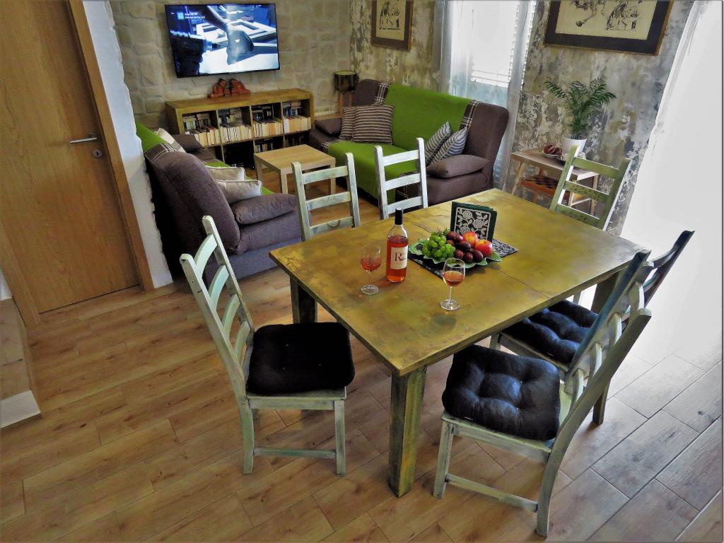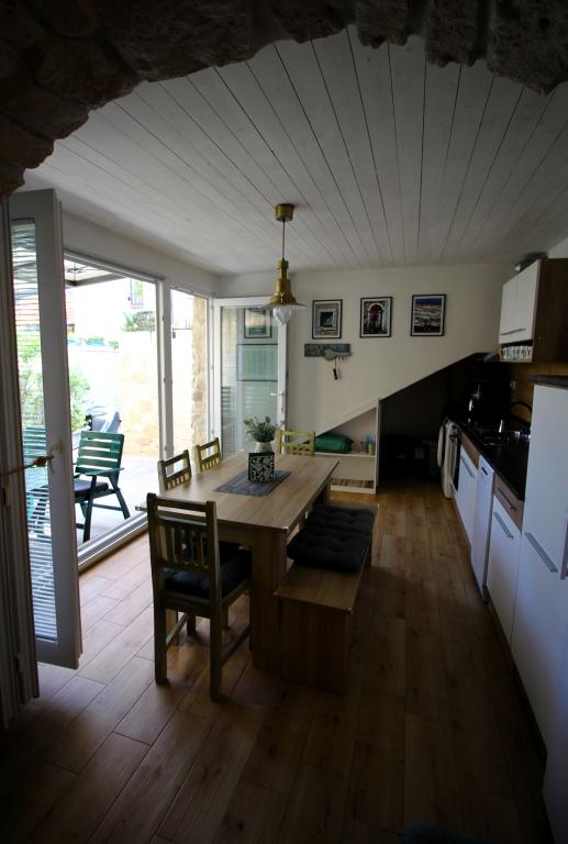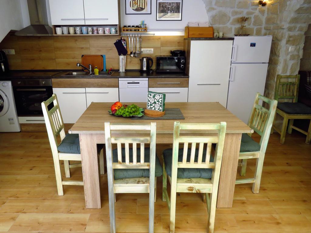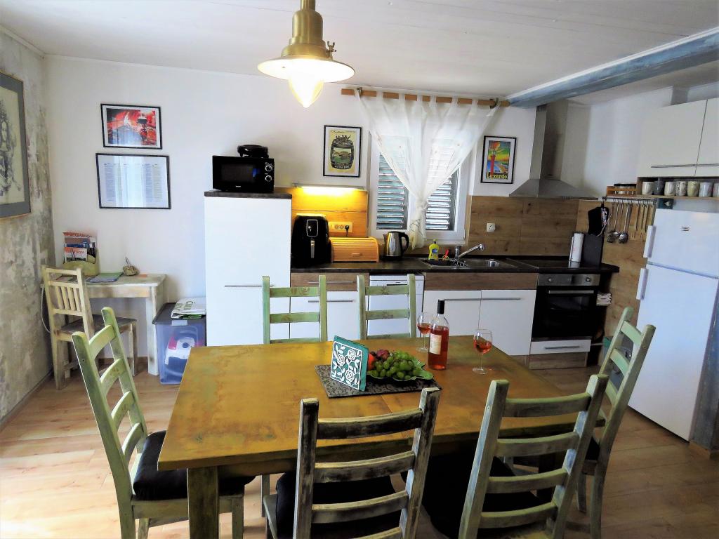 Hier bij Hobbit voel je je vanaf het begin als in een wattenschijfje. Je vergeet de urenlange reis meteen en je wordt betoverd door de esprit en geurige sfeer van het nieuwe, stenen huis met buitenzonwering, bloeiende bloemen, gezellige "kelder" met prachtige foto's die je terugbrengen naar de oudheid. Hier kunt u met uw gezin ontspannen met een boek of grillen. De vriendelijke, heldere en behulpzame eigenaresse zal graag al uw gedetailleerde vragen beantwoorden, helpen en adviseren. ik schrijf eerlijk voor zo'n uitstekende, hoge kwaliteit hebben we lange tijd nergens geslapen. Design, zacht beddengoed, meerdere kussens, kwaliteitsmatrassen en airconditioning staan garant voor een uitstekend slaapcomfort. De badkamer is zeer ruim, design, de douche ontbreekt niet aan douchegels, grote en kleine douchekoppen, voldoende zachte handdoeken en badhanddoeken. Ook de keuken is van alle moderne gemakken voorzien, een vaatwasser en een wasmachine. Mooie stoelen, in de optiek van het oude, stijlvol. Geloof dat je met pijn in je hart zult vertrekken, en je zult hem missen.