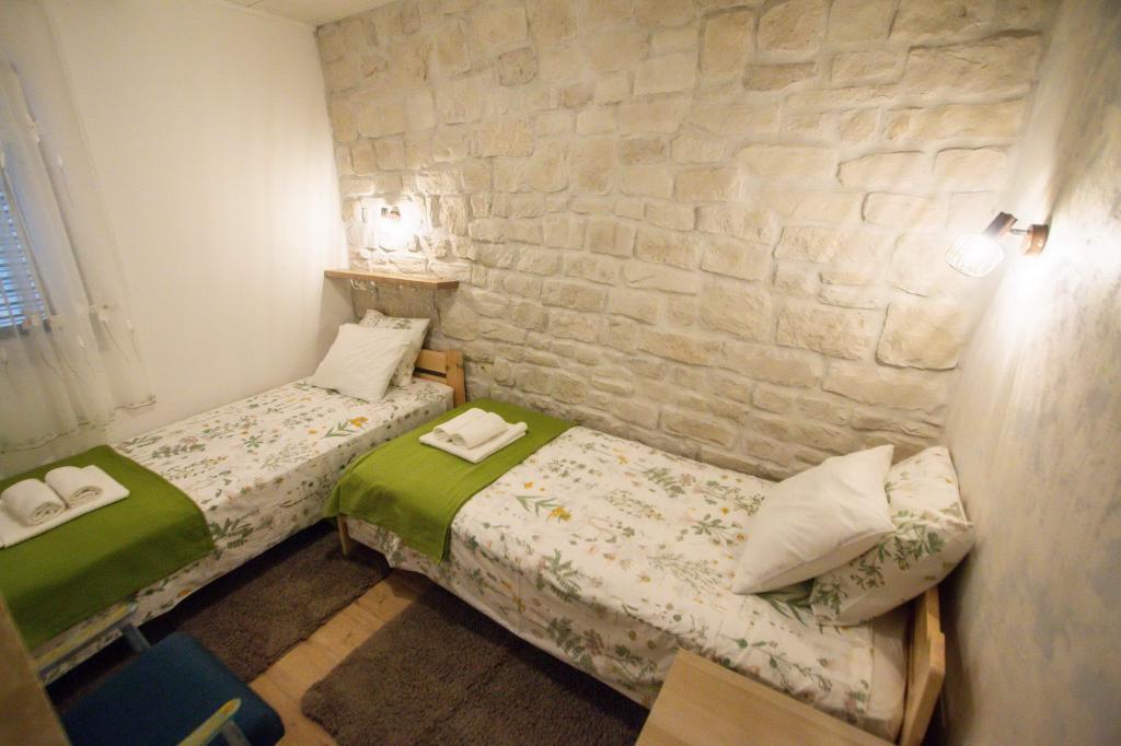 In het nieuwe woonhuis in Zadar in het stadsdeel Arbanasi zijn twee appartementen (4 sterren categorie). Elk appartement heeft een aparte ingang en privacy. Airconditioning in elke kamer. Vloerverwarming in elke kamer. Op de eerste verdieping bevindt zich HOBBIT1 (5 2), een volledig ingericht appartement met keuken. Twee badkamers met toilet. Groot terras met eettafel. Op de begane grond bevindt zich HOBBIT2 (4 2) volledig ingericht appartement met keuken. Ruime badkamer met toilet. Grote eetkamer met toegang tot de binnenplaats en eettafel. Elk appartement heeft een vaatwasser, wasmachine, strijkplank en strijkijzer, föhn, kinderbedje, kinderstoel, badkuip, toilet en nachtkastje voor baby's, satelliet-tv met nationale programma's van verschillende wereldtalen en kinderprogramma's, internet WIFI. Supermarkt in de directe omgeving - 40 m. Stadsbus naar het centrum vlakbij - 20 m. Loop langs de zee naar het centrum ongeveer 20 minuten. Stranden naar keuze in de buurt - 4 minuten lopen.