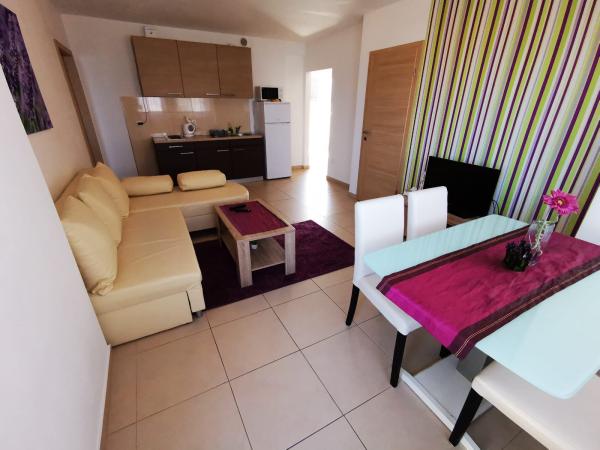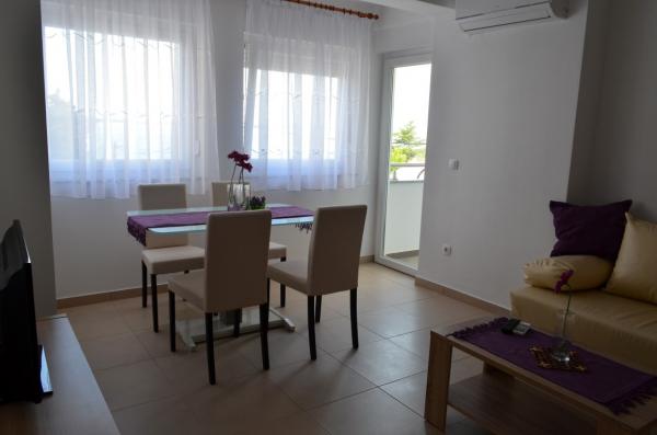 Netjes, rustig, schoon, mooi uitzicht vanaf het terras. De gastheer beschrijft het appartement eerlijk, aardig, vriendelijk, reageert snel als je iets nodig hebt. Dichtbij winkels, bakkerijen en restaurants. Dichtbij de bus die je naar Zadar en terug brengt. Je parkeert je auto en start hem pas als je naar huis vertrekt. Alle lof en aanbevelingen.