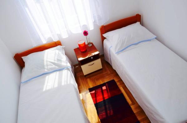 Eengezinswoning met volledig nieuw ingerichte appartement is gelegen in Dicle, een woonwijk van Zadar in de directe omgeving van het hotel en de faciliteiten Falkensteiner Borik. De appartementen bevinden zich naast de zee en het strand. Parkeren voor de deur van het gebouw is beveiligd. Rationeel gebruik van airconditioning en internet zijn inbegrepen in de prijs. De appartementen bevinden zich op 100 meter van het dichtstbijzijnde restaurant en op 300 m van de koffie bar, bakker en supermarkt. Alle appartementen hebben twee slaapkamers met ruime badkamers en een balkon / terras, airconditioning, LED-tv's met de mogelijkheid om filskih inhoud afspelen vanaf het USB-geheugen, WIFI. De eigenaar woont er ook en is 24/7 beschikbaar.