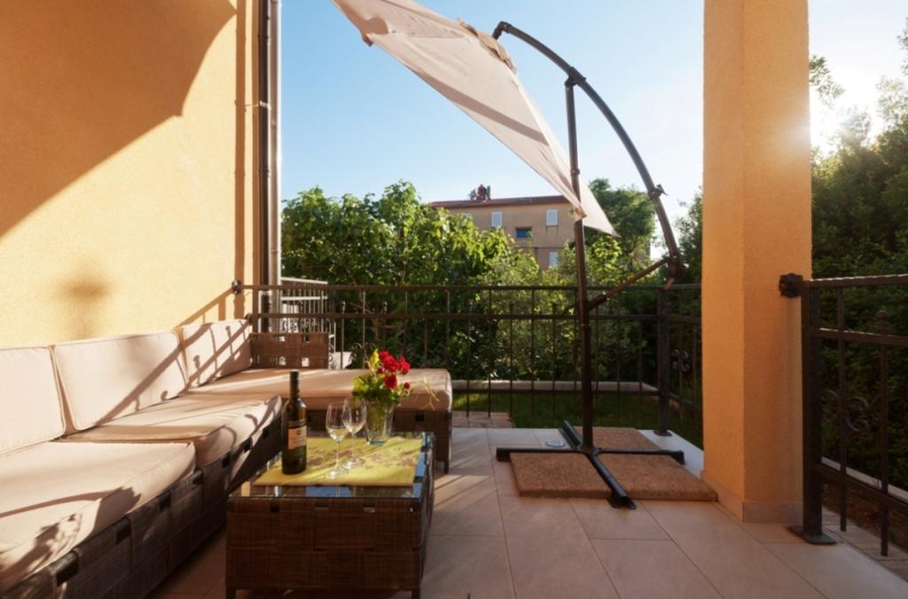 Modern en stijlvol ingericht appartement ideaal voor een stel in een rustige buurt van Zadar, tweede rij naar het kiezelstrand van Porthos en op 200 meter van het strand van Kolovare. Het ligt op 10 minuten lopen van het stadscentrum. Het appartement is volledig uitgerust en heeft een mooi terras omgeven door groen.