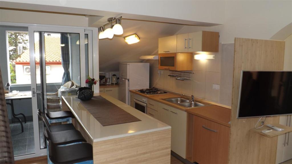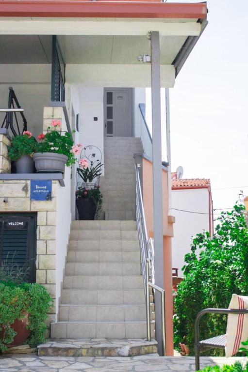 Appartementen Markov liggen op de derde rij vanaf de zee (ca. 100 m), in een doodlopende straat, waar u rust en ontspanning vindt. Ze zijn onlangs gerenoveerd en uitgerust met airconditioning, tv en satellietontvanger, en een machine met altijd koud en vers water. We zijn vlakbij het busstation, de Graski-bus rijdt elke 30 minuten naar het centrum en het hoofdbusstation.