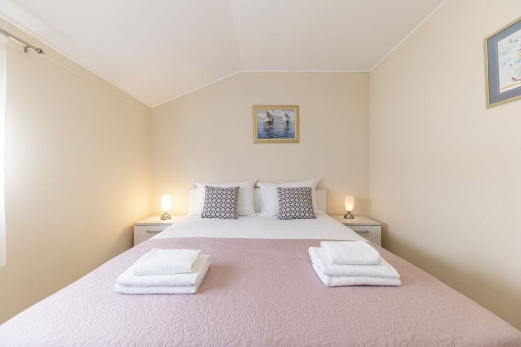 We waren met 6 volwassenen die in twee appartementen verbleven. De appartementen hebben alles wat u nodig heeft voor uw verblijf en de netheid is uitzonderlijk. De familie Penjalov staat tot uw dienst voor al uw wensen. Bedankt voor de rode wijn. Ik raad het uit de grond van mijn hart aan.