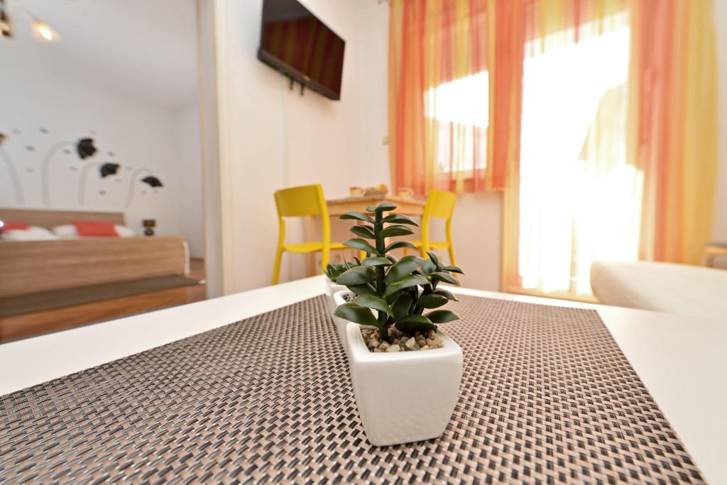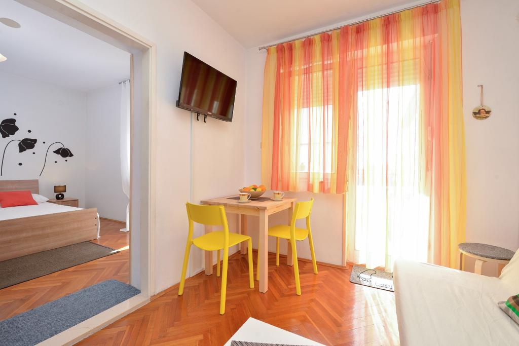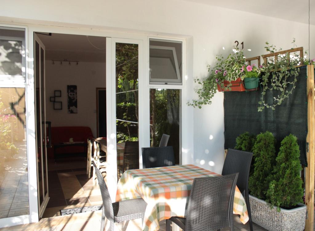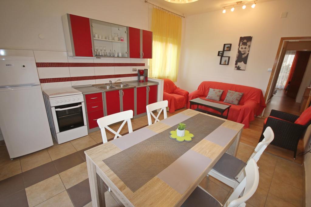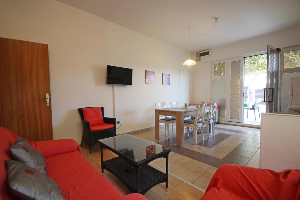 Appartement in een rustig en toeristisch deel van Zadar, genaamd Borik. De faciliteit ligt op 8 minuten van het strand, de supermarkt en het busstation. Het appartement is volledig uitgerust met alles wat je nodig hebt. Het heeft twee slaapkamers, badkamer, grote woonkamer met keuken en eethoek, een balkon aan de achterkant en een terras aan de voorkant. Het appartement beschikt over airconditioning, satelliet-tv, wifi is beschikbaar. Parkeren is in de tuin. Gasten kunnen gebruikmaken van de barbecue die zich ook op de binnenplaats van de faciliteit bevindt.