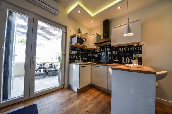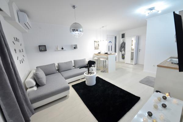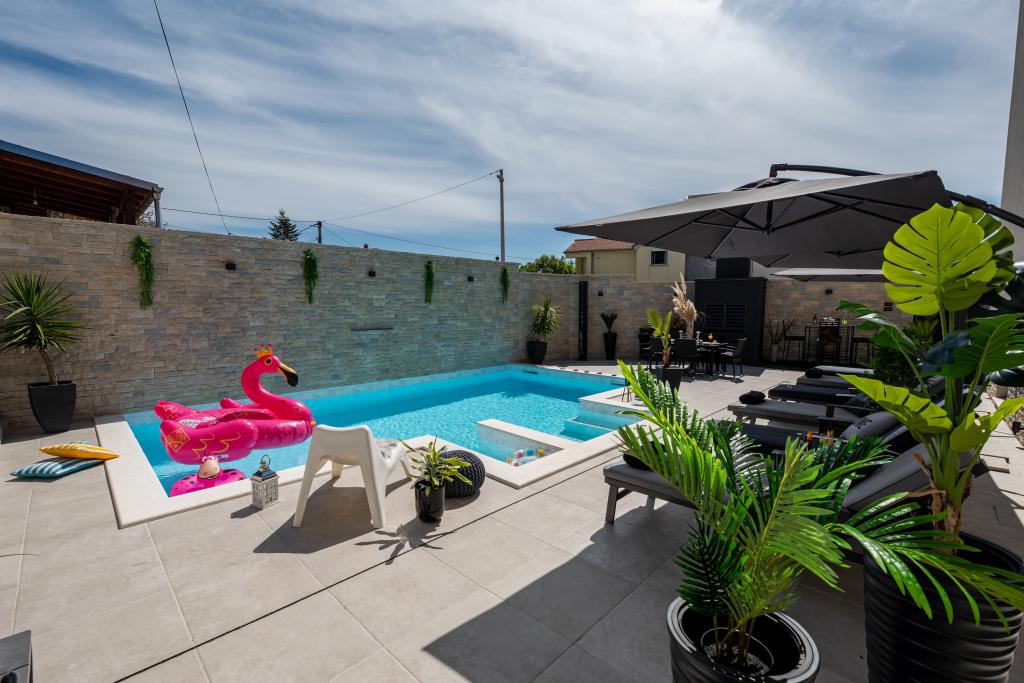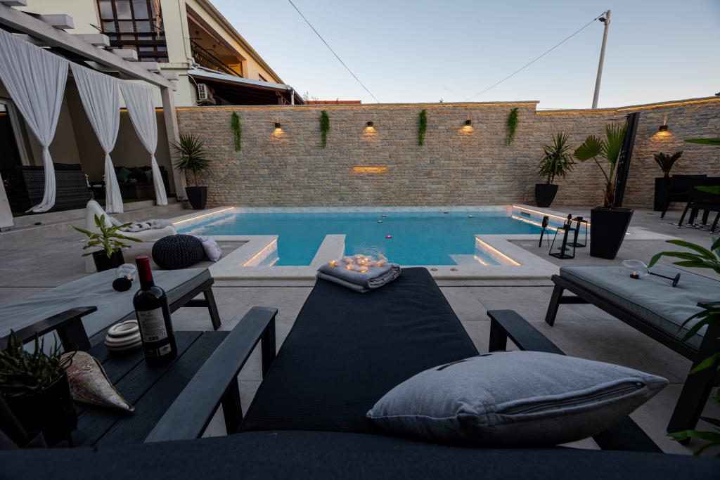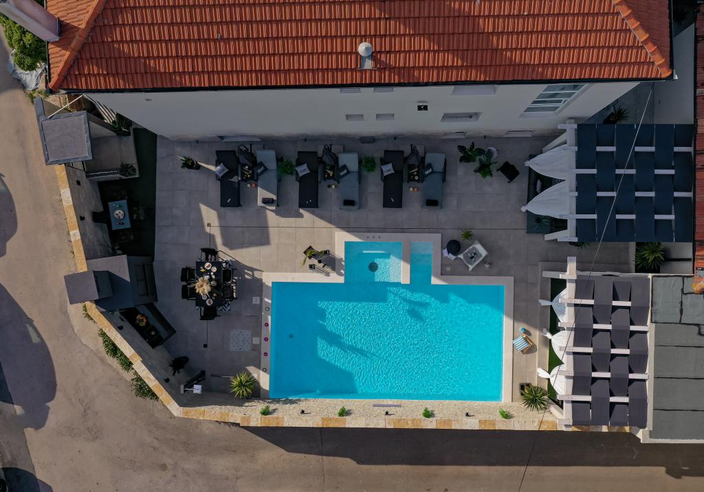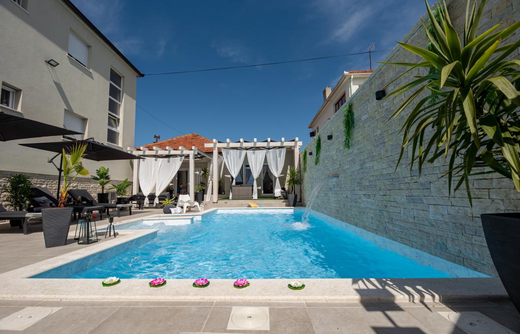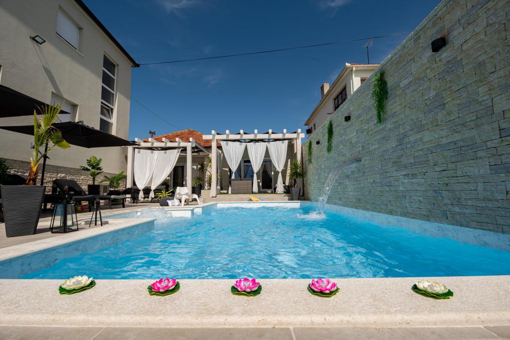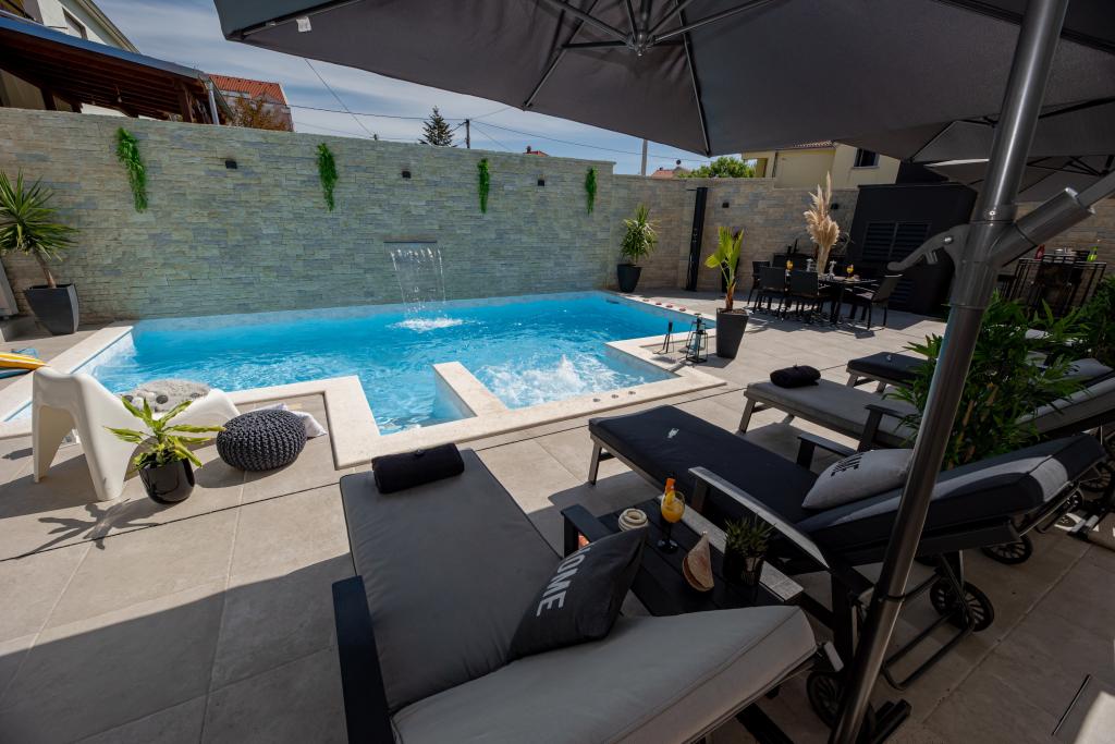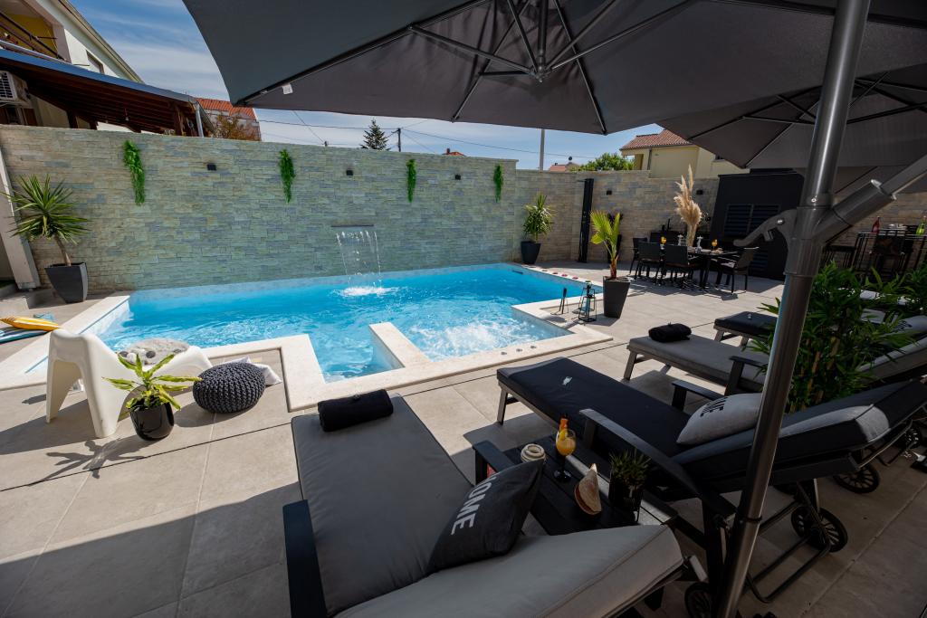 Nieuwe moderne appartementen voorzien van alles (beddengoed, handdoeken, smart tv, wifi, airconditioning, servies, eerste hulp, letterlijk tot aan de naald en draad! Maskers en desinfectie bij de ingang!) Als onderdeel van het terras van het appartement (dat is in combinatie met andere appartementen te koppelen voor een grote groep) aparte ingang, 6 parkeerplaatsen. Aan de overkant 2 bakkerijen, Bakmaz-supermarkt, slechts 3 minuten lopen naar Tommy discountwinkel, 5 minuten lopen naar Kaufland, Interspar, 5 minuten naar Višnjik sportcentrum (allerlei sportvelden, trimbaan, kinderspeelkamer), in de kapperswijk, schoonheidssalon, massagesalon, taxi pizza, winkelcentrum Stadsgalerie ... 10-15 min te voet of 5 min met de auto naar het dichtstbijzijnde strand Kolovare, zwembad ... 15 min lopen of 5 min met auto naar het stadscentrum (schiereiland) ... 15 minuten met de auto alle grote stranden, zandstrand - kitesurfen, Ljubac, Zaton, Pinija, Petrcane, Sukosan, Nin ... We organiseren ook vervoer van en naar de luchthaven en speedboottochten naar de eilanden, duiken of gewoon dolfijnen zien ... Vanaf dit jaar verwarmd zwembad, barbecue !!
