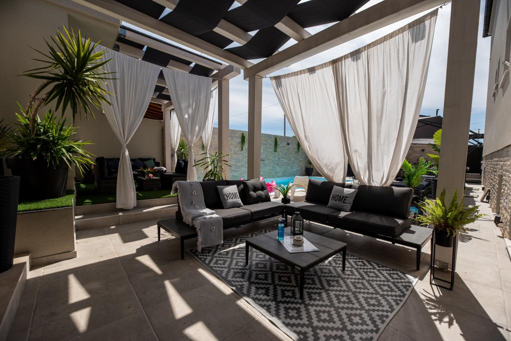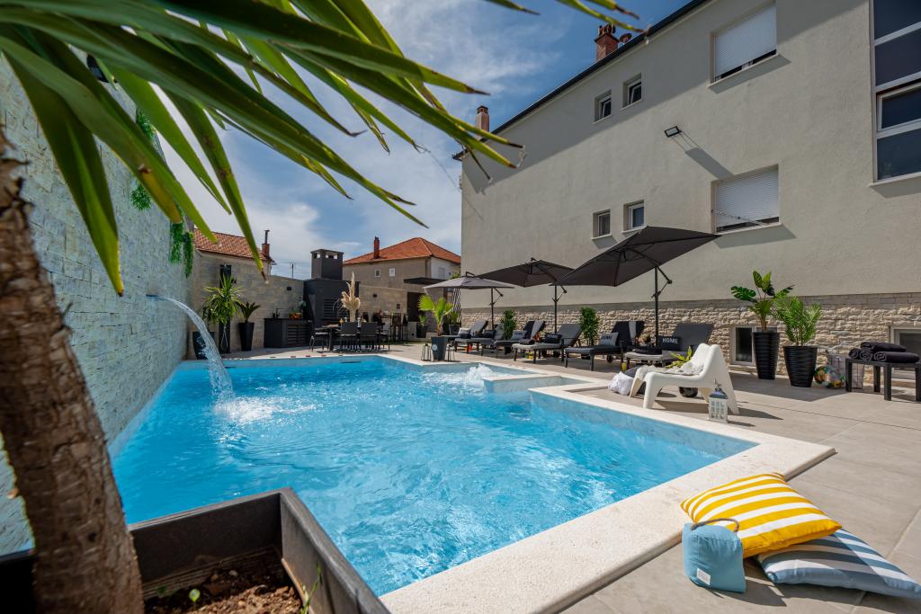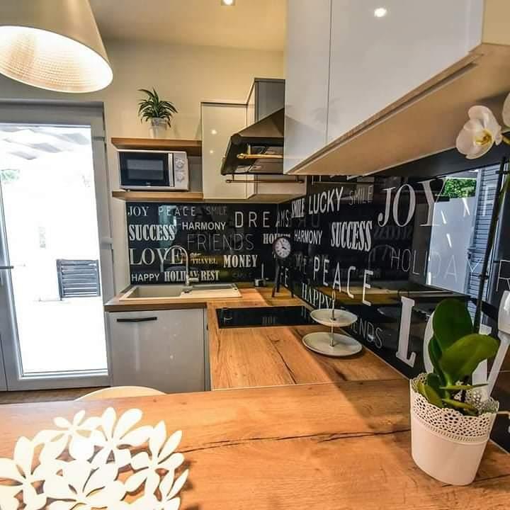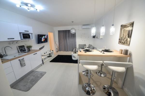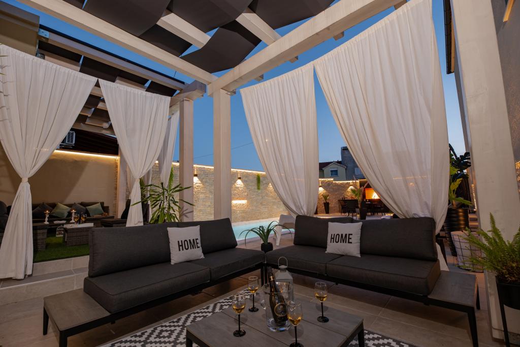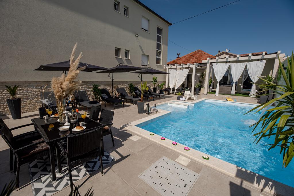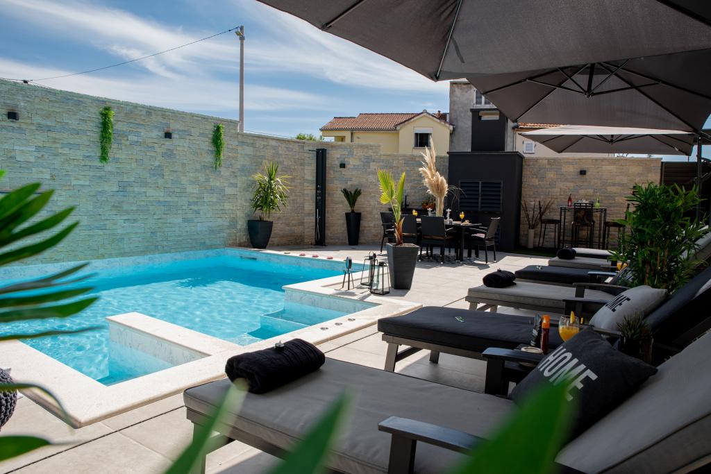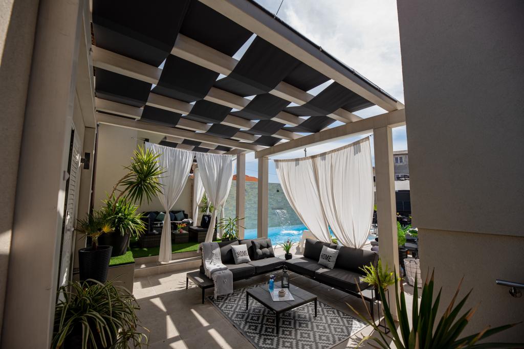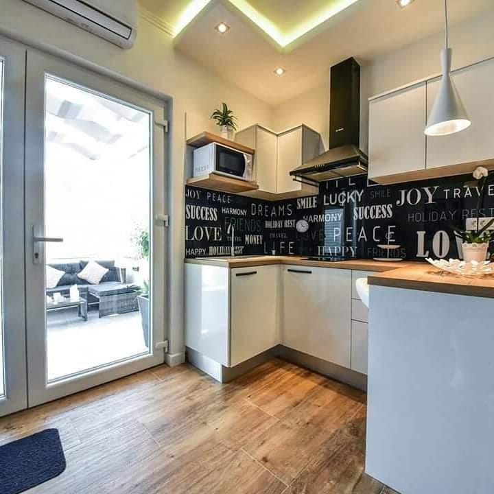 Nieuwe moderne appartementen voorzien van alles (beddengoed, handdoeken, smart tv, wifi, airconditioning, servies, eerste hulp, letterlijk tot aan de naald en draad! Maskers en desinfectie bij de ingang!) Als onderdeel van het terras van het appartement (dat is in combinatie met andere appartementen te koppelen voor een grote groep) aparte ingang, 6 parkeerplaatsen. Aan de overkant 2 bakkerijen, Bakmaz-supermarkt, slechts 3 minuten lopen naar Tommy discountwinkel, 5 minuten lopen naar Kaufland, Interspar, 5 minuten naar Višnjik sportcentrum (allerlei sportvelden, trimbaan, kinderspeelkamer), in de kapperswijk, schoonheidssalon, massagesalon, taxi pizza, winkelcentrum Stadsgalerie ... 10-15 min te voet of 5 min met de auto naar het dichtstbijzijnde strand Kolovare, zwembad ... 15 min lopen of 5 min met auto naar het stadscentrum (schiereiland) ... 15 minuten met de auto alle grote stranden, zandstrand - kitesurfen, Ljubac, Zaton, Pinija, Petrcane, Sukosan, Nin ... We organiseren ook vervoer van en naar de luchthaven en speedboottochten naar de eilanden, duiken of gewoon dolfijnen zien ... Vanaf dit jaar verwarmd zwembad, barbecue !!