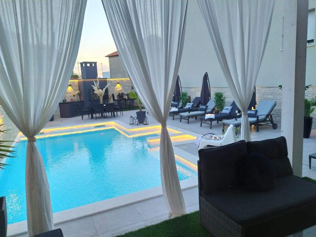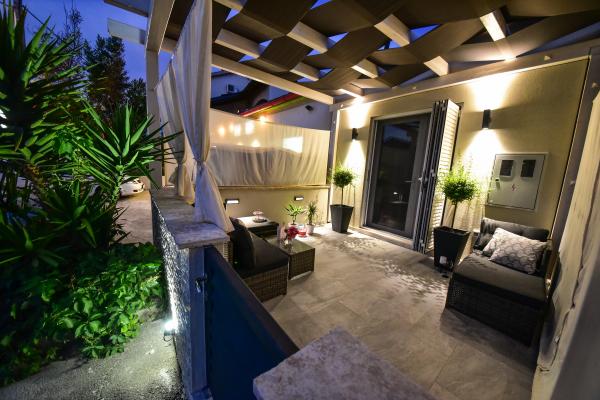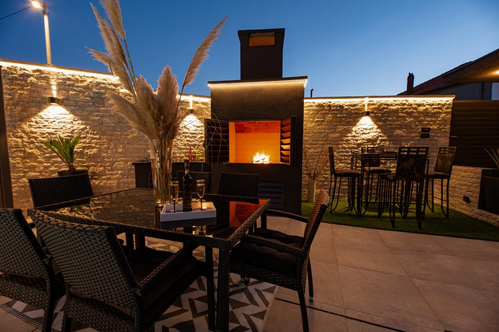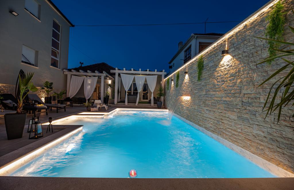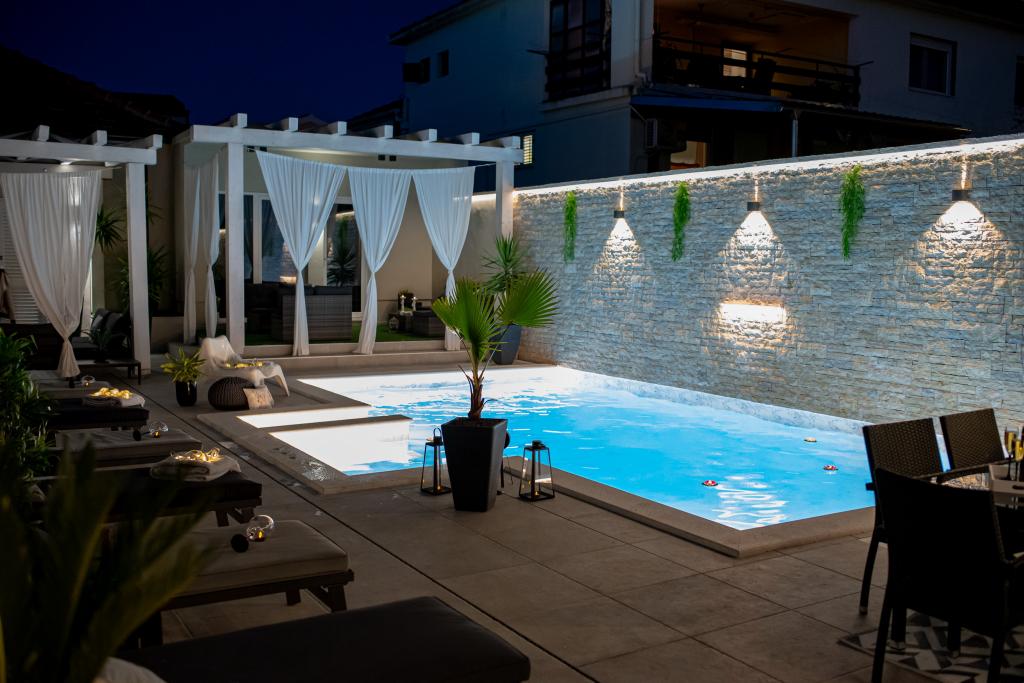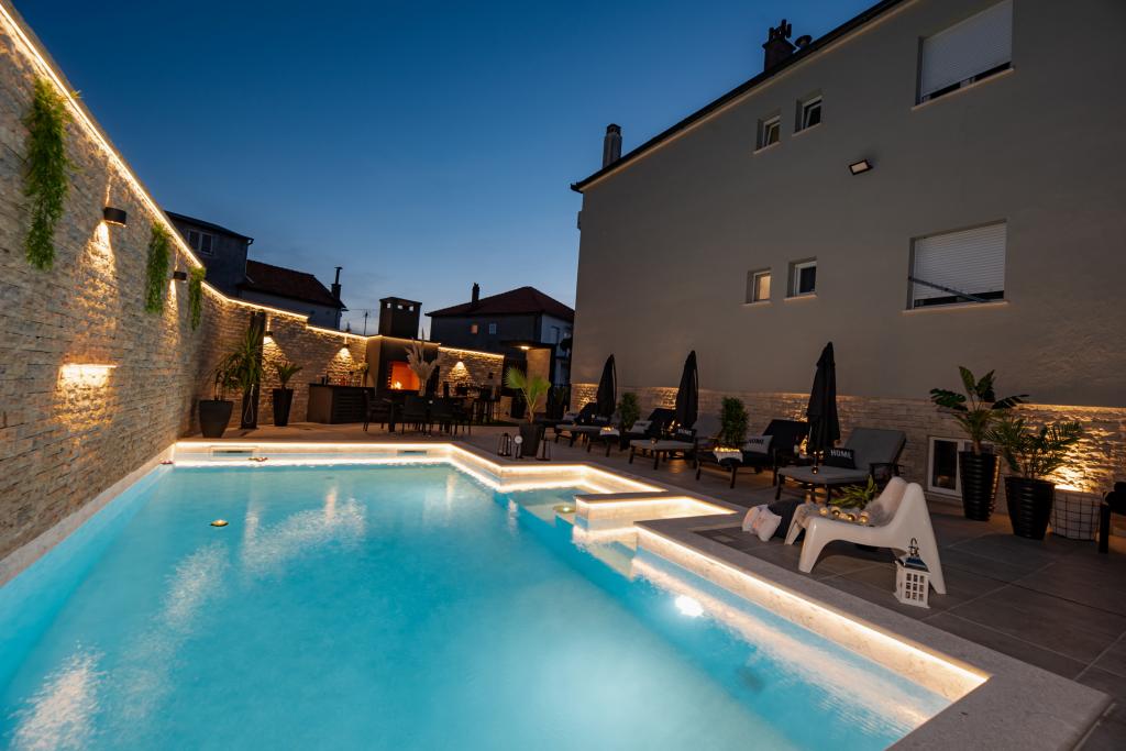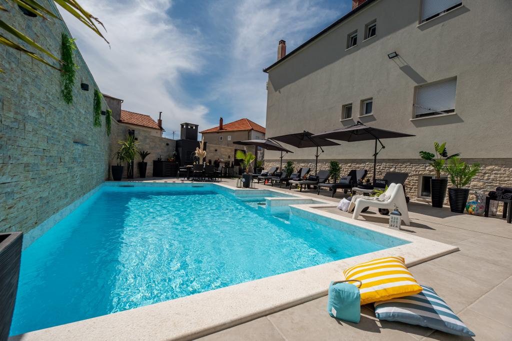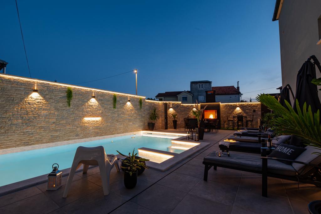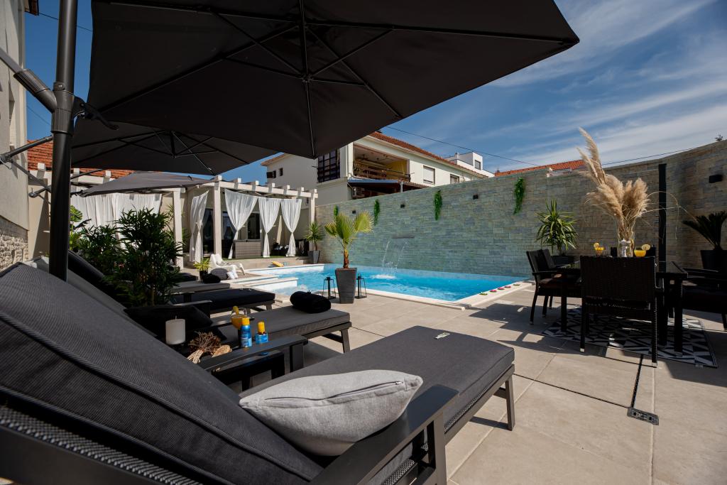 Nieuwe moderne appartementen voorzien van alles (beddengoed, handdoeken, smart tv, wifi, airconditioning, servies, eerste hulp, letterlijk tot aan de naald en draad! Maskers en desinfectie bij de ingang!) Als onderdeel van het terras van het appartement (dat is in combinatie met andere appartementen te koppelen voor een grote groep) aparte ingang, 6 parkeerplaatsen. Aan de overkant 2 bakkerijen, Bakmaz-supermarkt, slechts 3 minuten lopen naar Tommy discountwinkel, 5 minuten lopen naar Kaufland, Interspar, 5 minuten naar Višnjik sportcentrum (allerlei sportvelden, trimbaan, kinderspeelkamer), in de kapperswijk, schoonheidssalon, massagesalon, taxi pizza, winkelcentrum Stadsgalerie ... 10-15 min te voet of 5 min met de auto naar het dichtstbijzijnde strand Kolovare, zwembad ... 15 min lopen of 5 min met auto naar het stadscentrum (schiereiland) ... 15 minuten met de auto alle grote stranden, zandstrand - kitesurfen, Ljubac, Zaton, Pinija, Petrcane, Sukosan, Nin ... We organiseren ook vervoer van en naar de luchthaven en speedboottochten naar de eilanden, duiken of gewoon dolfijnen zien ... Vanaf dit jaar verwarmd zwembad, barbecue !!