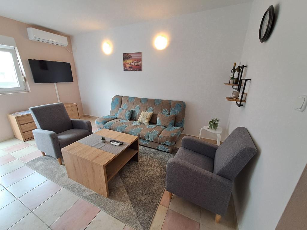 Het is gelegen in het rustige stadje Zaton (Zadar). De afstand tot de zee bedraagt ongeveer 250 meter, dezelfde afstand tot het eerste zandstrand. Het appartement heeft een oppervlakte van 46 m2 en is van alle gemakken voorzien voor een gezellige familievakantie. Het bestaat uit twee slaapkamers, woonkamer, keuken en badkamer. Er is een aparte berging beschikbaar. Het appartement ligt op de begane grond met twee ruime terrassen en een beveiligde parkeerplaats voor twee auto's. Wi-Fi internet, Max TV, airconditioning en barbecue zijn beschikbaar.
