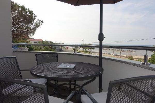 In de buurt: - Toeristisch resort Zaton - 60 m - Kinderspeelplaats - 20 m - Koffiebar - 20 m - Restaurant met halfpension - 30 m - Bakkerij - 40 m - Kiosken met strandbenodigdheden - 40 m - Buitenfitness - 40 m - Zadar - 12 km - Nin - 1 km Het strand beschikt over douches, kleedkamers en toiletten. Ligstoelen, parasols, waterfietsen en andere strandbenodigdheden zijn te huur. Binnen een straal van 100 km bevinden zich de nationale parken Paklenica, Kornati, Plitvice-meren, Krka en Noord-Velebit.