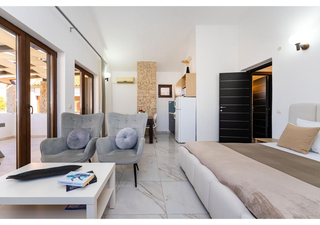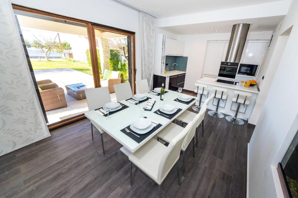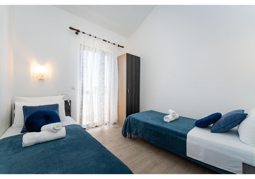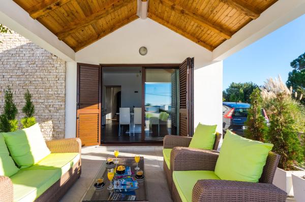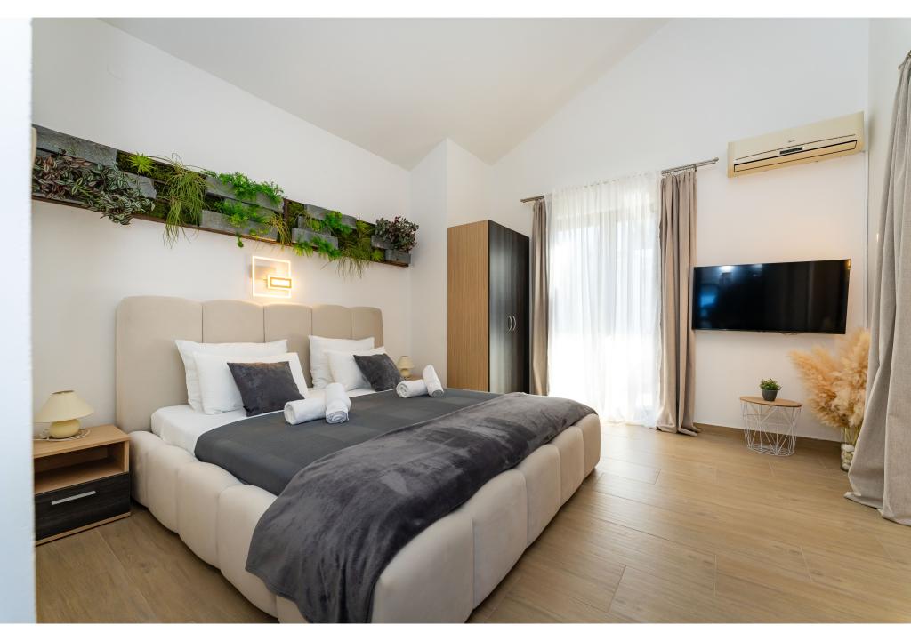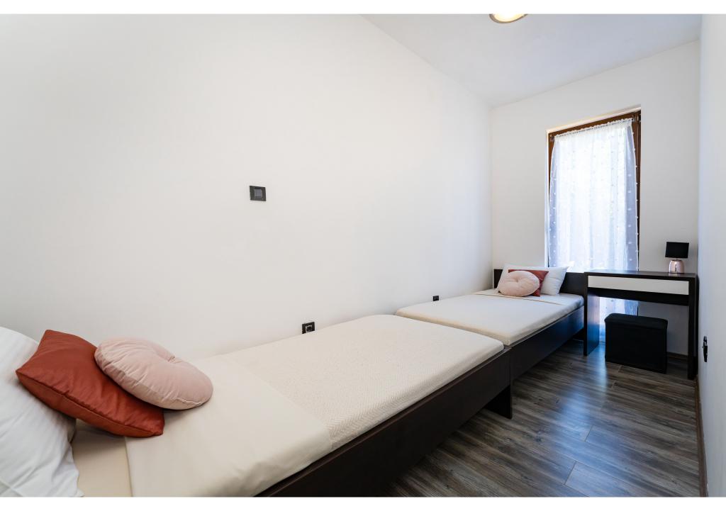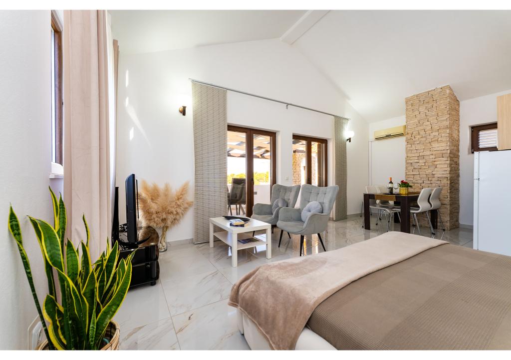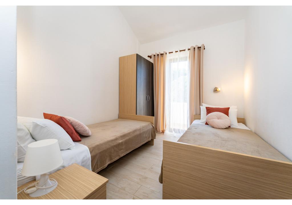 Appartementen op de eerste rij aan zee. Terras met uitzicht op zee. De baai is zanderig en ondiep. De appartementen liggen vlakbij het toeristische centrum van Zaton en zijn voorzien van airconditioning, internet, satelliet-tv, parkeergelegenheid, barbecue, etc.