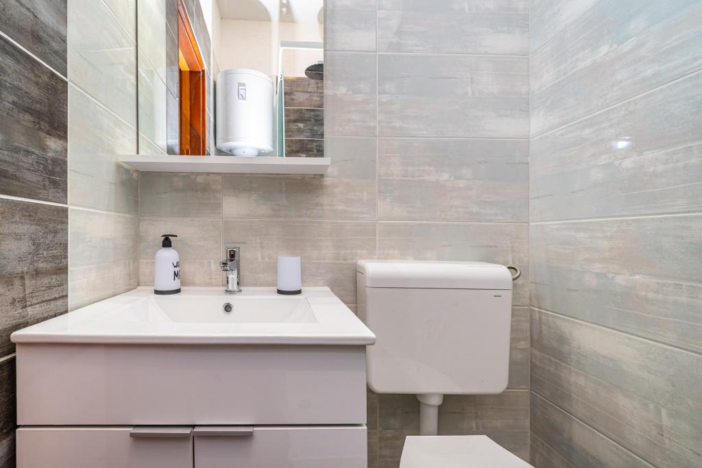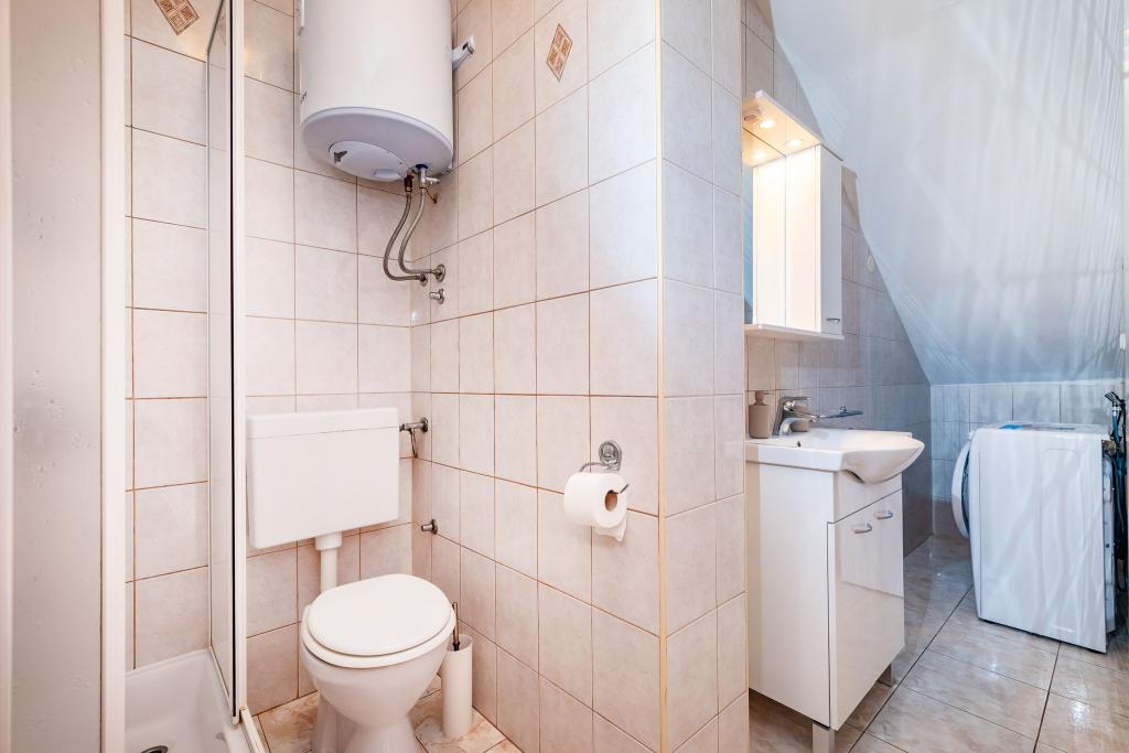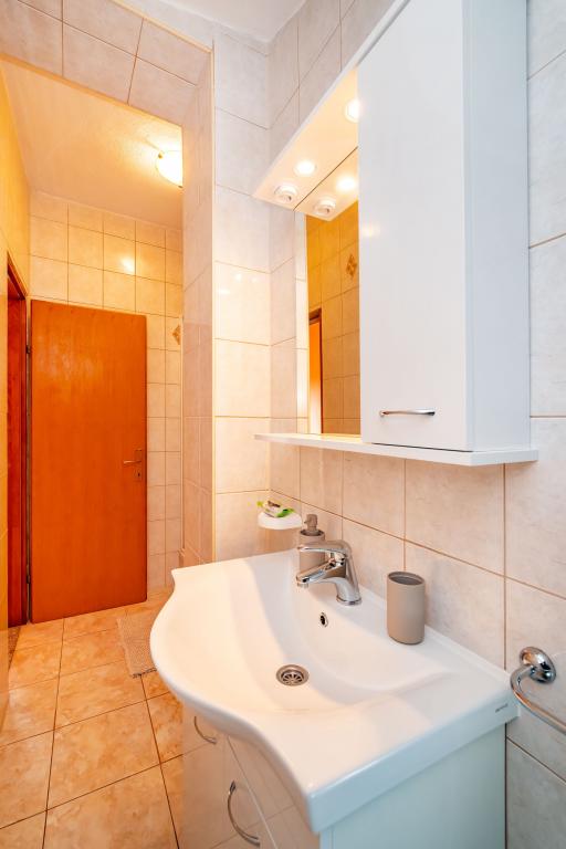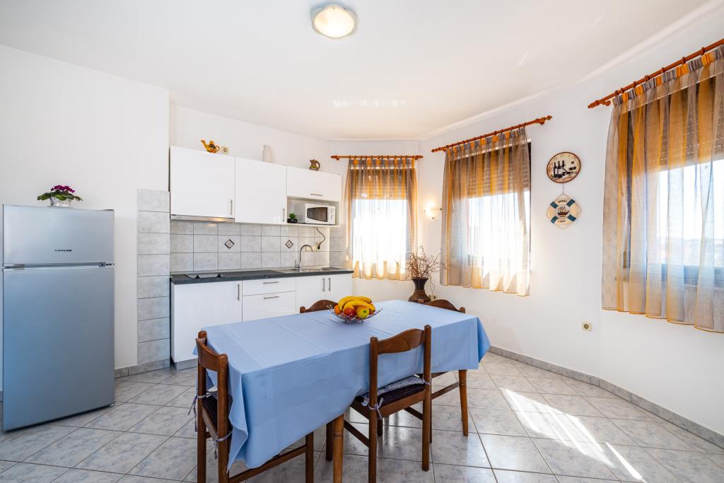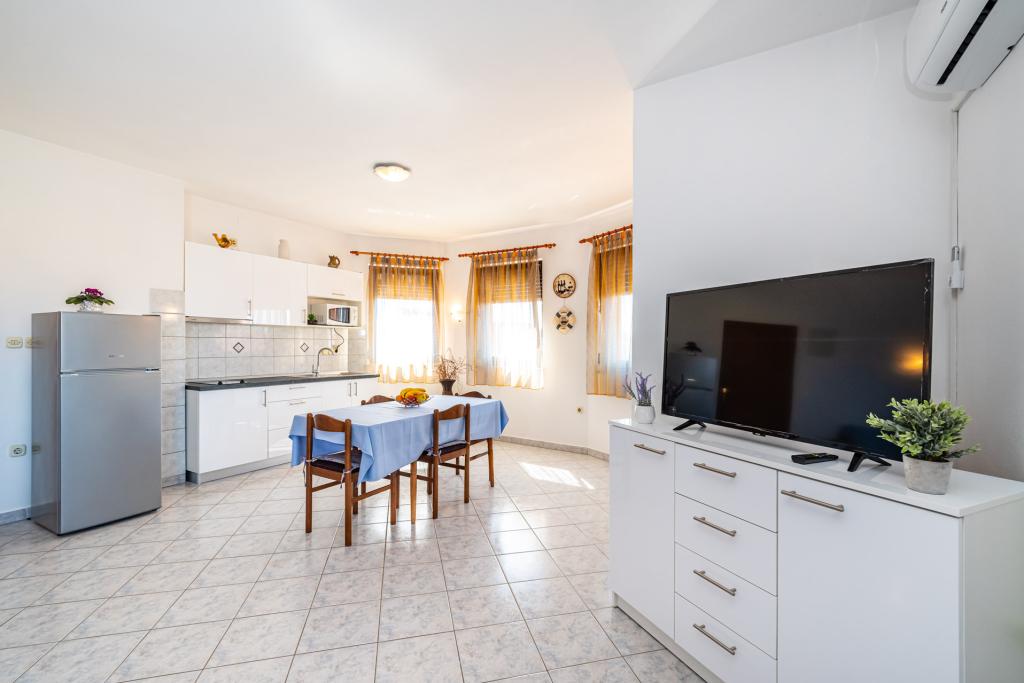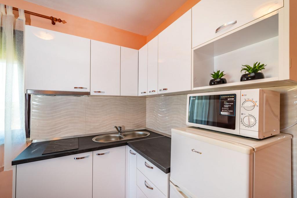 Aanbeveling voor mevr. Mirjana en haar accommodatie. Mijn man en ik brachten 7 heerlijke dagen door. De dame is onopvallend, heel zachtaardig en meegaand, een echte gastvrouw. Accommodatie in een volledig uitgeruste studio was uitstekend, alles was netjes en schoon. De gastvrouw trakteerde ons op haar zelfgekweekte tomaten en komkommers (het lijkt erop dat ze medelijden had met ons lot, want in ons huis werd wat niet verwoest was door indringers en de zon vernietigd door het recente ijs). Voldoende ruimte om te parkeren. Mooi ingerichte tuin. Het dichtstbijzijnde strand ligt letterlijk op een steenworp afstand van het huis. Het strand is netjes, het buitenste gedeelte is van beton en er zit zand in de zee. Er zijn ook 2 douches met warm water. Winkels, restaurants, kerk... alles is dichtbij. We hadden de auto helemaal niet nodig. We hebben hem alleen aangestoken toen we naar een concert gingen in het Vir- en Aquapark in Biograd.