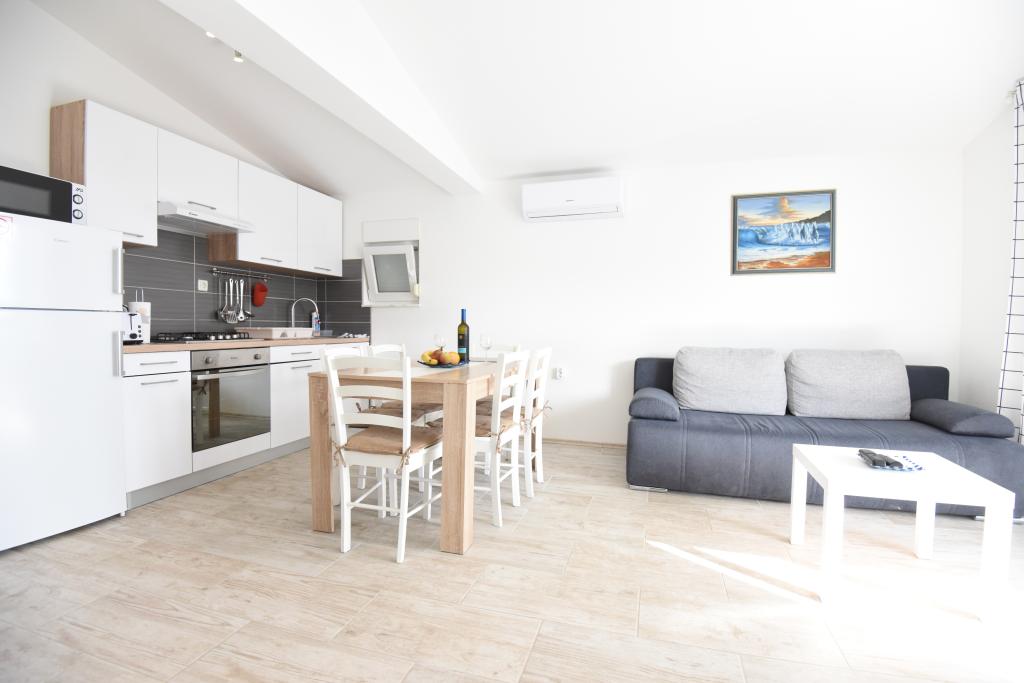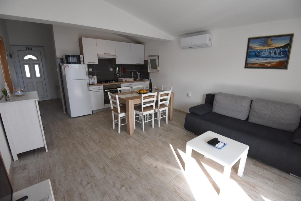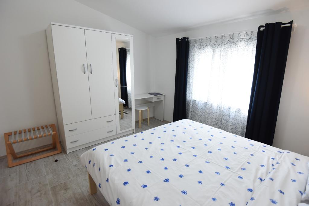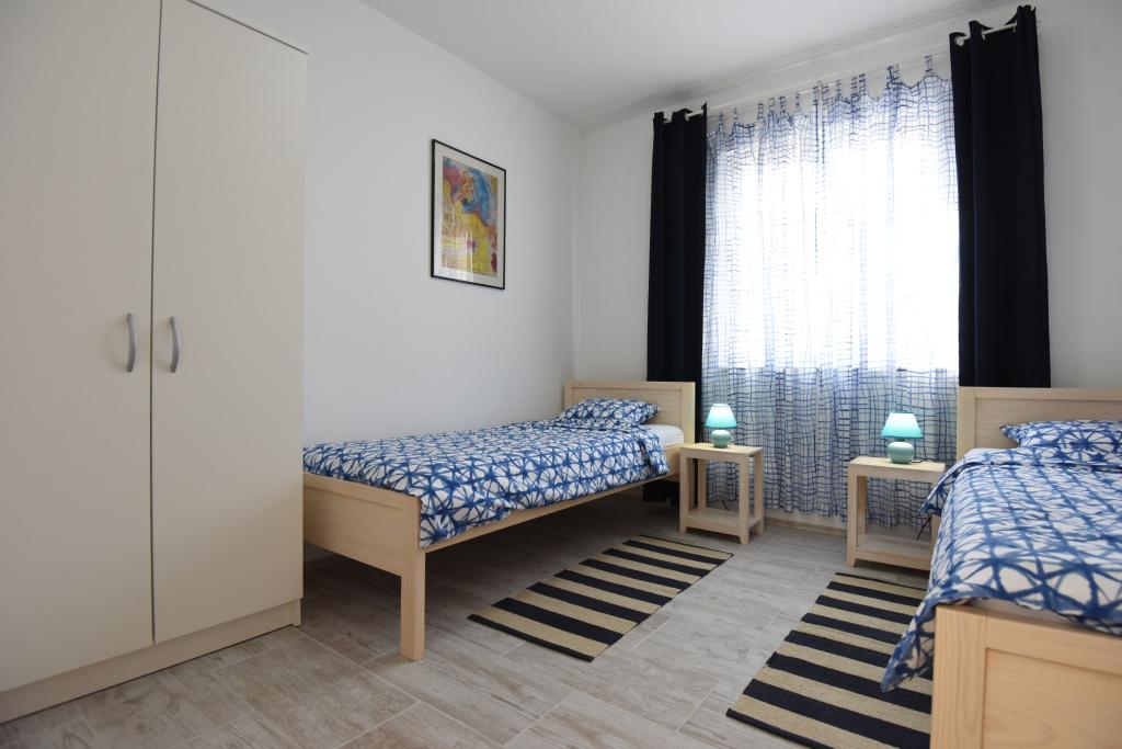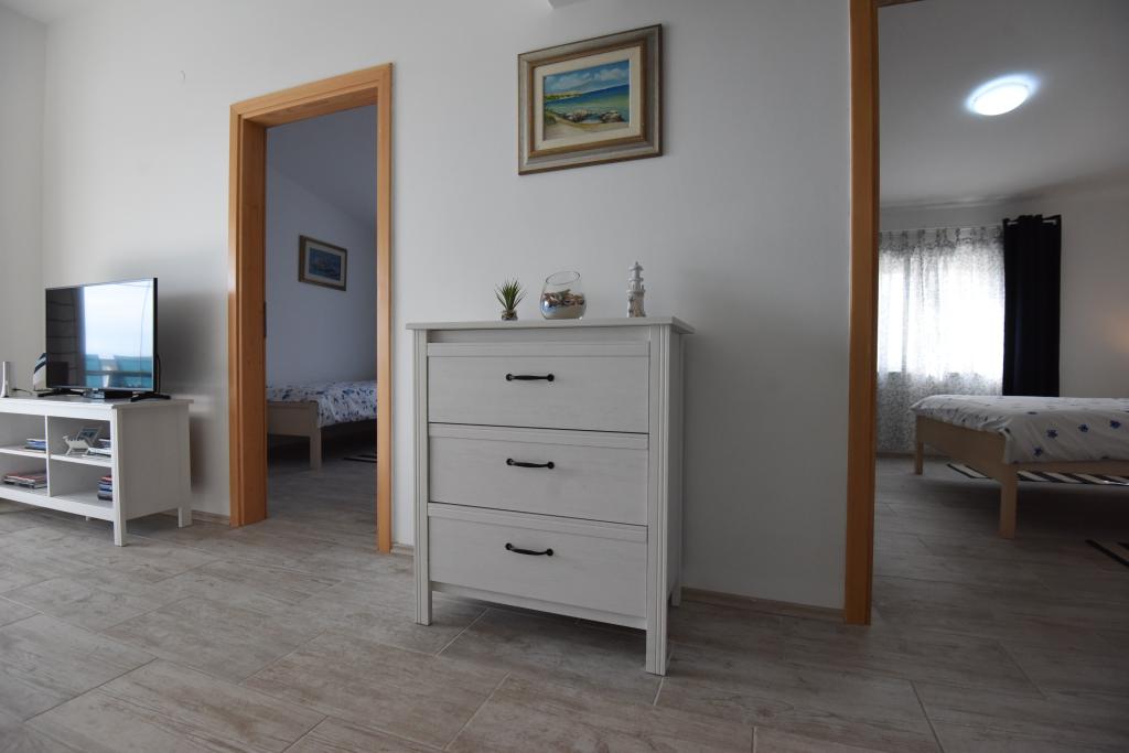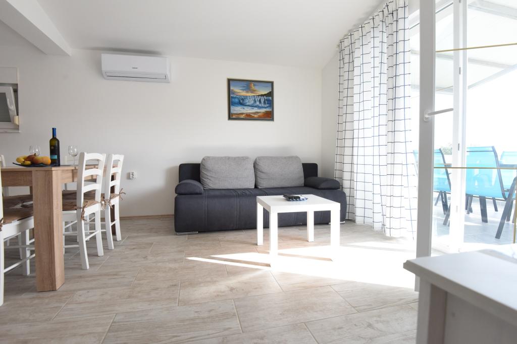 Ruime, modern ingerichte appartementen met zeezicht, direct aan het strand van Matlovac, zijn een ideaal verblijf voor gezinnen met kinderen. Het gebouw met eigen oprit bestaat uit twee units, twee appartementen van elk 75 m² (begane grond en eerste verdieping) met overdekte terrassen. De appartementen zijn voorzien van alle gemakken voor een aangename vakantie en er zijn kinderbedjes en kinderstoelen beschikbaar. Parkeren is mogelijk in de tuin, evenals het gebruik van een barbecue en een buitendouche. Het strand is verhard/kiezelachtig met een zandbodem en zonwering is gemakkelijk te vinden in het dennenbos. Er zijn twee cafés met fastfood naast het strand, met extra voorzieningen: een trampoline voor kinderen en een beachvolleybalveld.