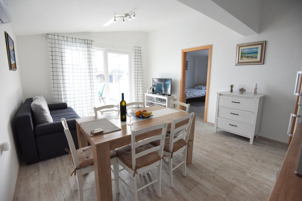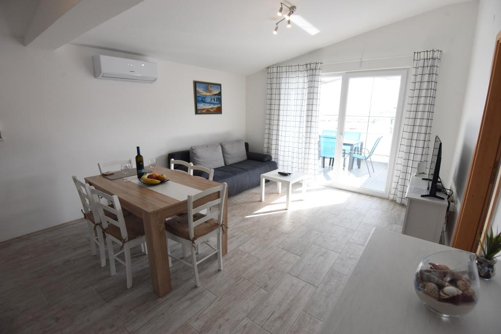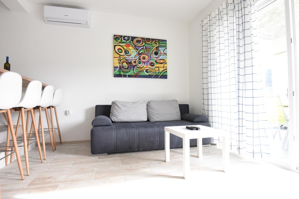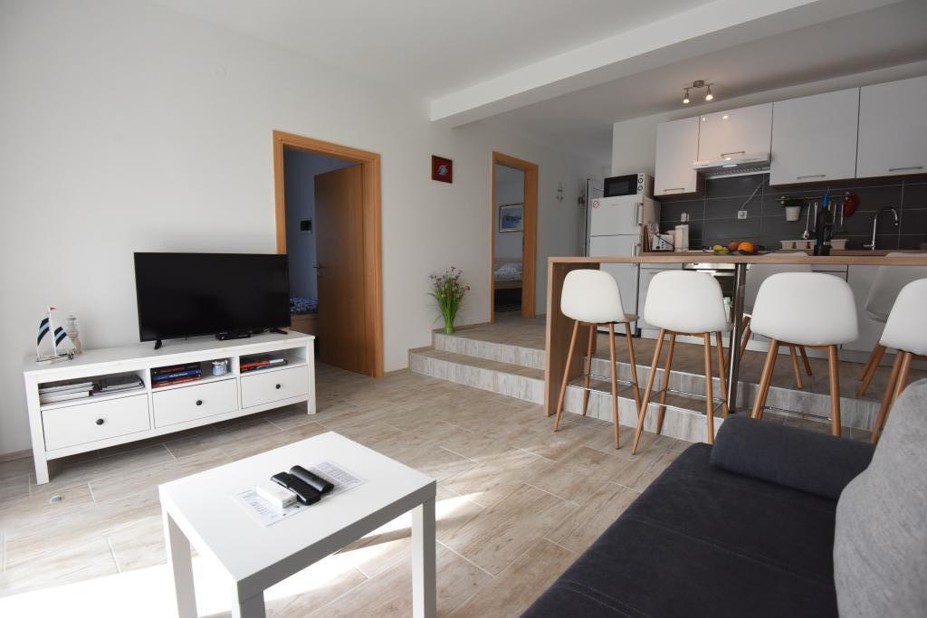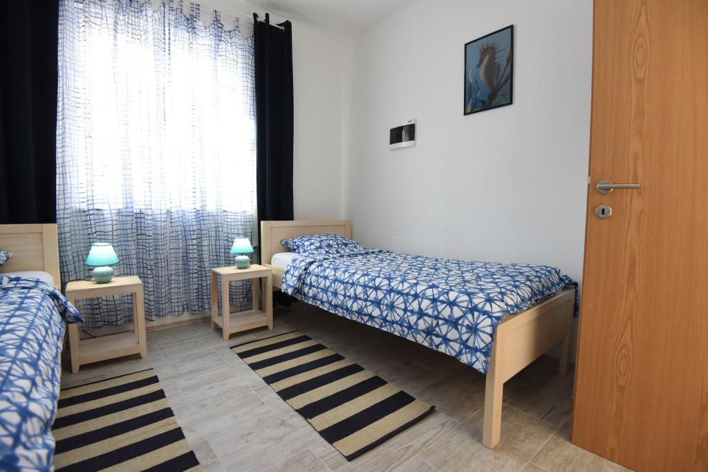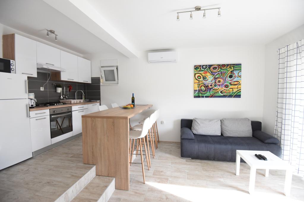 Ruime, modern ingerichte appartementen met zeezicht, direct aan het strand van Matlovac, zijn een ideaal verblijf voor gezinnen met kinderen. Het gebouw met eigen oprit bestaat uit twee units, twee appartementen van elk 75 m² (begane grond en eerste verdieping) met overdekte terrassen. De appartementen zijn voorzien van alle gemakken voor een aangename vakantie en er zijn kinderbedjes en kinderstoelen beschikbaar. Parkeren is mogelijk in de tuin, evenals het gebruik van een barbecue en een buitendouche. Het strand is verhard/kiezelachtig met een zandbodem en zonwering is gemakkelijk te vinden in het dennenbos. Er zijn twee cafés met fastfood naast het strand, met extra voorzieningen: een trampoline voor kinderen en een beachvolleybalveld.