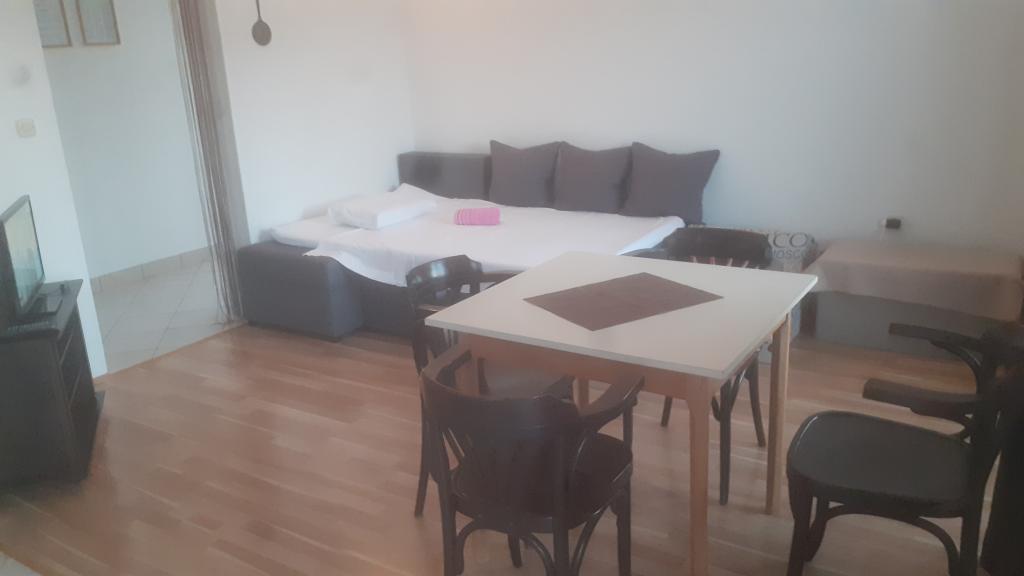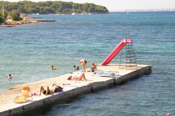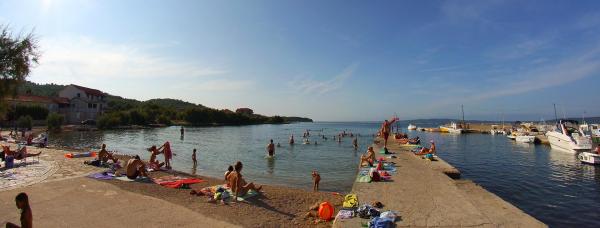 Twee nieuwe appartementen in een kleine rustige plek Banj op het eiland Pasman ligt op 120 meter van de zee. In plaats van het zandstrand. De plaats is rijk met druiven, vijgen en kersen. Stad is rijk aan ondergrondse drinkwater vandaar de naam van, Banj. Op de heuvel Bokolj is er een kleine kerk van Onze-Lieve-Vrouw van Loreto, waar het uitzicht strekt zich uit tot de Kornati archipel, Long Island, Iz, Rava, Zadar, Split, Trogir, etc ... De belangrijkste sport in de bowling (pompoen), maar voor de rest van het eiland is ideaal voor fietsers en voor jonge kinderen. Geen al te druk. De verbinding met het vasteland is uitstekend, tien minuten met de auto naar de veerboot, hetzij naar Zadar of Biograd (vijftien vluchten per dag), alles wat je nodig hebt om snel te zijn op het land. Tkdj. georganiseerd schepen gaan naar het Nationaal Park Kornati op dagtochten door de schoonheid van de natuur. Wij als gastheren te zijn we altijd bij de hand en tot uw dienst, wat het ook zijn.