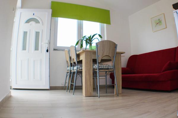 binnenland Appartement 1 kamer 32 m2, op de begane grond, op het zuidoosten. 1 kamer met 1 dubbel. bed (160 cm, lengte 200 cm). Eetkamer met Sat-TV. TV (Flatscreen TV). Open keuken (oven, 4 keramische kookplaat). Douche / toilet. Ter beschikking: Internet (Wireless LAN [WLAN], gratis). Huis / de residence Appartementencomplex. In een rustige, zonnige ligging, 160 m van de zee, op 160 meter van het strand. Voor medegebruik: terrein 500 m2. Tuinmeubelen. In het huis: internetaansluiting. Parkeren op het terrein. Winkel, restaurant 220 m, kiezelstrand 160 m.