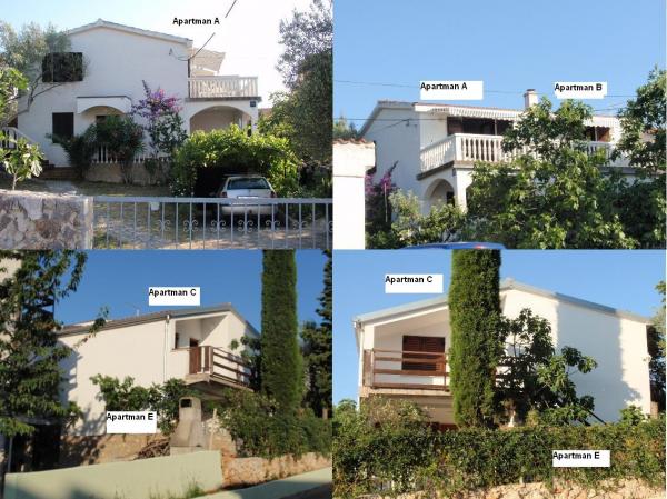 Appartementen A en B bevinden zich op de eerste verdieping, een terras met uitzicht op de zee en de zon wordt beschermd door luifels. De woonkamer heeft een tweepersoonsbed en een keuken. In een kleinere kamer heeft een stapelbed geschikt voor kinderen. Het appartement heeft een badkamer. Het appartement is geschikt voor maximaal 4 personen - 2 volwassenen en 2 kinderen. Het appartement beschikt over airconditioning. Appartement C is gelegen op de eerste verdieping, terras met uitzicht op het eiland en de zee. Het appartement heeft twee slaapkamers, een slaapkamer heeft een tweepersoonsbed en een met 2 eenpersoonsbedden. De woonkamer heeft een eenpersoonsbed en een keuken. Het appartement heeft een badkamer en is geschikt voor 4-5 personen. Het appartement beschikt over airconditioning. Appartement E is gelegen op de begane grond een terras met uitzicht op het eiland en de zee. Het appartement heeft twee slaapkamers, een slaapkamer heeft een tweepersoonsbed en een met 2 eenpersoonsbedden. De woonkamer heeft een eenpersoonsbed en een keuken. Het appartement heeft een badkamer en is geschikt voor 4-5 personen. Alle appartementen zijn uitgerust met TV en satelliet-tv, een koelkast van 180 liter. Meer op: www.micka-apartmani.com