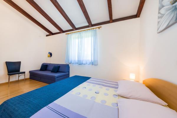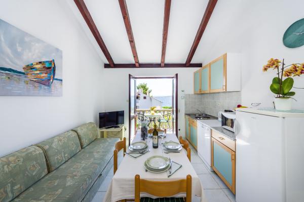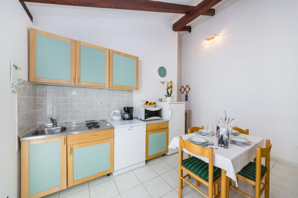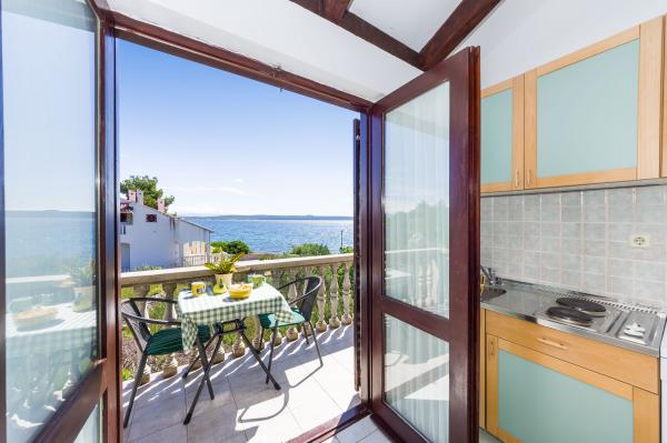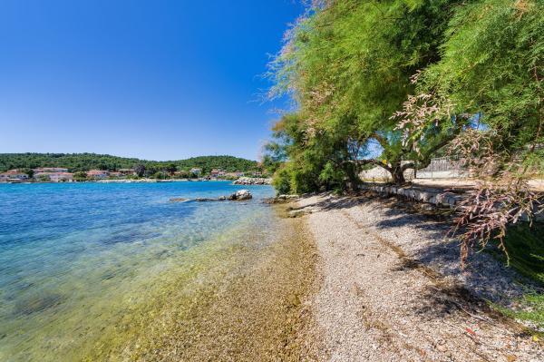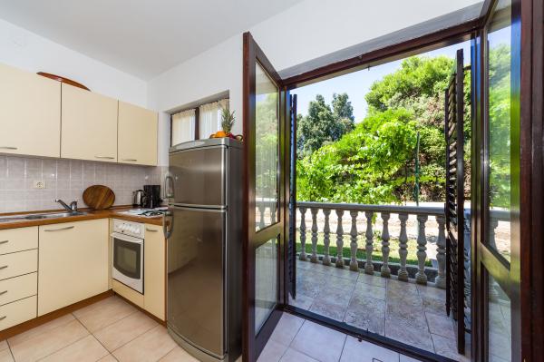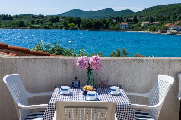 Volledig ingerichte appartementen, airconditioning, satelliet-tv, internet, ..... Gelegen in een rustige baai, EERSTE RIJ NAAR DE ZEE. In de tuin is er een barbecue met een groot terras voor gezellige familiebijeenkomsten. De tuin is geschikt voor kinderen, met een glijbaan en schommel. . Er is parkeergelegenheid op het erf. , Voor het huis is een strand, geschikt voor kleine kinderen.Vanaf het erf ben je direct op het strand. Het strand is met kleine kiezelstenen en heeft natuurlijke schaduw. Het tweede strand, dat gedeeltelijk uit zand bestaat, ligt op 150 m. Voor het gebouw is een waterkant (pier), dus het is mogelijk om een ligplaats voor een kleine boot te gebruiken. Kleinere winkels en cafés liggen op 150 m. Restaurant met visspecialiteiten ligt op 300 m. Naar het stadscentrum moet u 15 minuten lopen, waar een restaurant, patisserie, markt, markt, postkantoor is ..... WELKOM!!