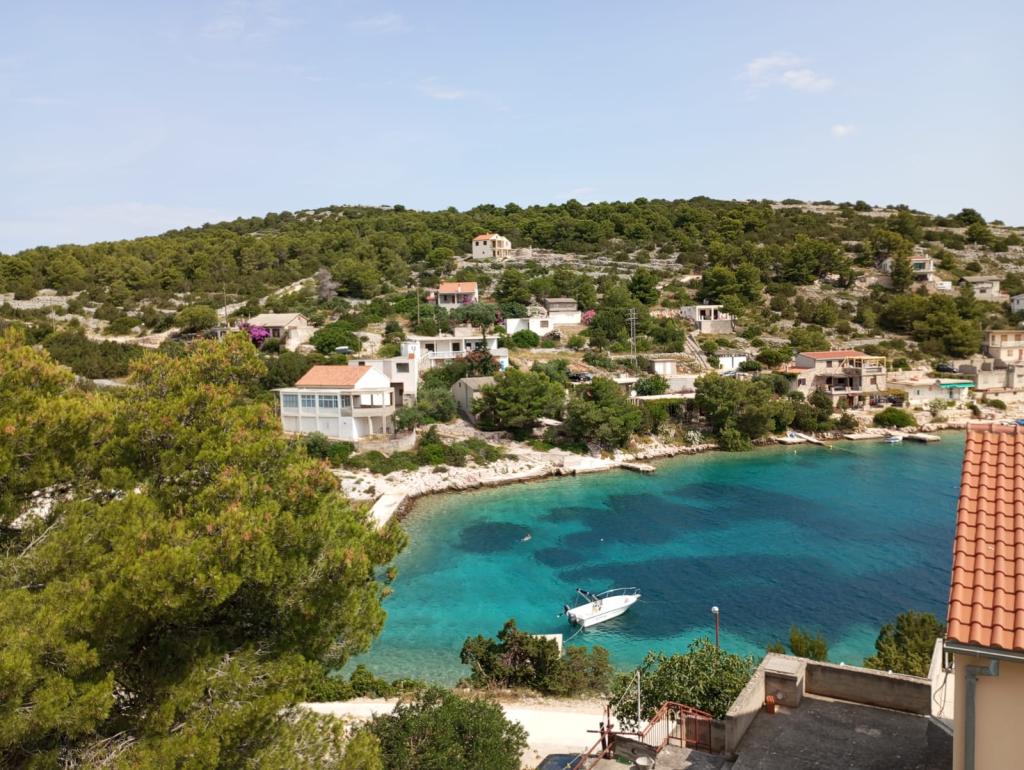 Het volledig ingerichte appartement op het eiland Zirje ligt op slechts 30 meter van de zee. Vanaf het terras is er een prachtig uitzicht op de zee in de richting van Sibenik. Een ideale vakantie die genieten biedt in de ongerepte natuur, een heerlijk schone zee, heerlijk en gezond eten.