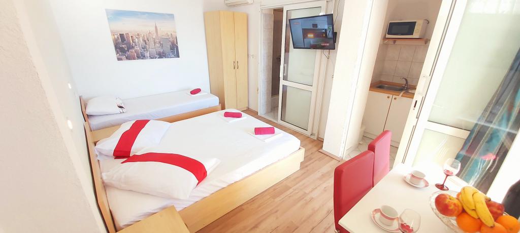 Inlusief wel Toeristenbelasting. Boekingsbevestigingsdocument bij reserveringGuesthouse Andrija is een echt pareltje aan de Makarska Rivièra. Het ligt op slechts 60 meter van de zee en biedt comfortabele en goed uitgeruste appartementen die aan de verwachtingen van zelfs de meest veeleisende gasten zullen voldoen. De ligging is ideaal vanwege de nabijheid van het Blato-strand en andere charmante plaatsen, zoals Velika Duba of Camp Dole. Wij raden aan