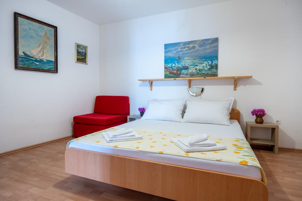 Inlusief wel Toeristenbelasting. Boekingsbevestigingsdocument bij reserveringDe modder heeft een aantal mooie stranden en afgelegen baaien met veel natuurlijke schaduw. Alle stranden, omringd door pijnbomen, met een zeer geleidelijke toegang tot de zee, geschikt voor kinderen. De zee is schoon en glashelder. Voor de meer actieve vakantie kunt tennissen of voetballen en watersporten, een boot huren, jet ski, scooter... Vissers nachts, met live muziek, gegrilde vis en veel traditionele folk entertainment worden georganiseerd op een wekelijkse basis. Liefhebbers van wandelen of wandelen zal gemarkeerde routes in de omliggende bossen en de berghelling te vinden. Excursies naar de nabijgelegen eilanden worden dagelijks georganiseerd. U kunt gaan raften op de rivier Cetina of foto safari door de Neretva Delta, allemaal binnen 50 km van het pand.