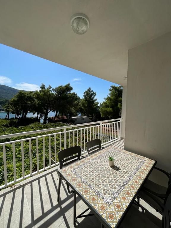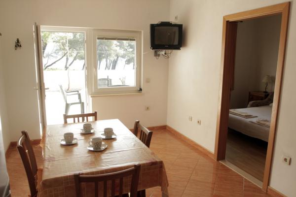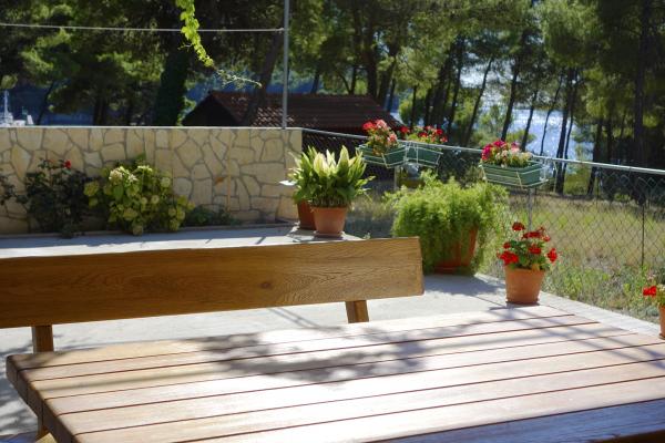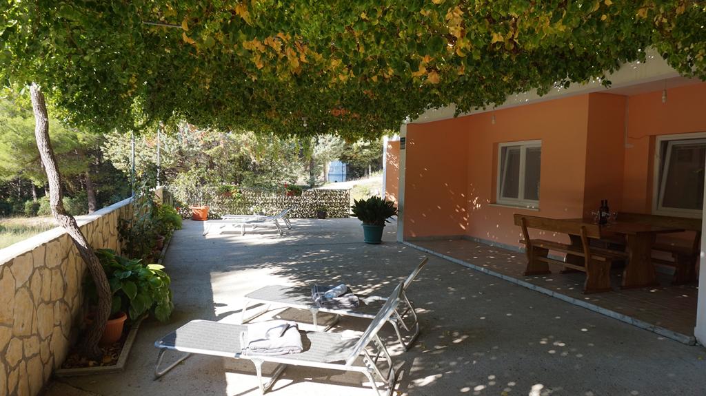 De appartementen liggen op 50 meter van het hoofdstrand; er zijn diverse kleinere strandjes onder het huis. Het centrum van de stad, waar een winkel, postkantoor en geldautomaat te vinden zijn, ligt op 5 minuten loopafstand. Het pand is omgeven door pijnbomen en heeft een groot terras met klimplanten voor schaduw. Er is een eigen barbecue en een buitendouche. Het pand kan in zijn geheel of in delen gehuurd worden.