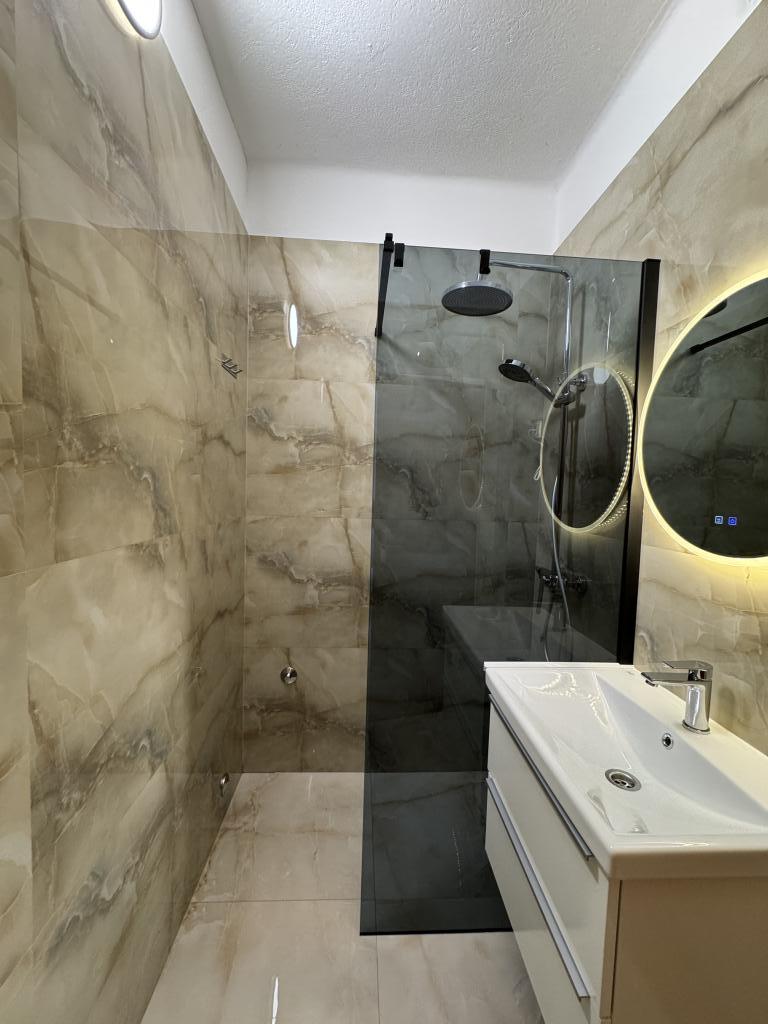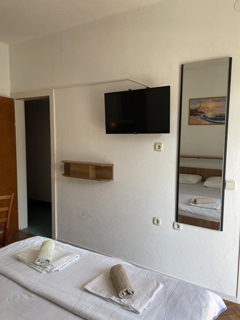Ik beveel de Tina-appartementen van harte aan omdat ze ons een vakantie hebben bezorgd die we nog nooit eerder hebben gehad. Het huis ligt letterlijk direct aan het strand, we zaten op de begane grond, en het bleek ideaal voor ons met twee kinderen omdat we ons geen zorgen hoeven te maken over spullen inpakken, naar het strand gaan, de kinderen kunnen gaan zwemmen wanneer ze maar willen en we kijken naar ze vanaf het terras terwijl we lunchen of koffie drinken Het appartement is groot, ruim en uitgerust met alle benodigde accessoires, en ik geef een groot pluspunt aan het feit dat het ook een vaatwasser heeft. Er zijn verschillende andere mooie stranden in de buurt die op een paar minuten lopen liggen. De plaats is rustig en heeft alle nodige faciliteiten voor een perfecte vakantie.