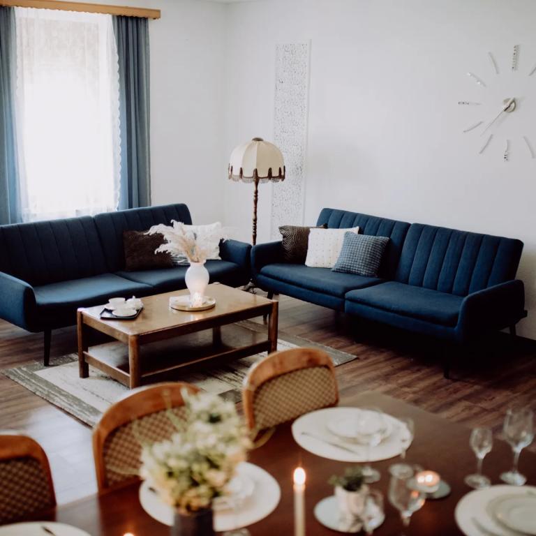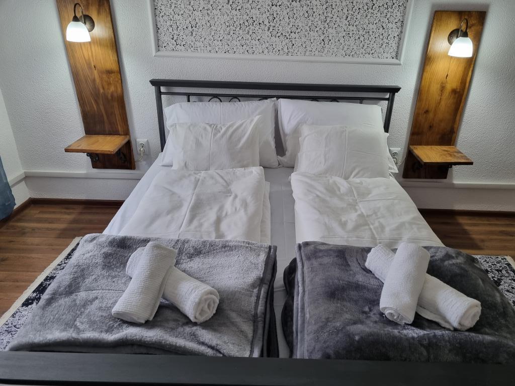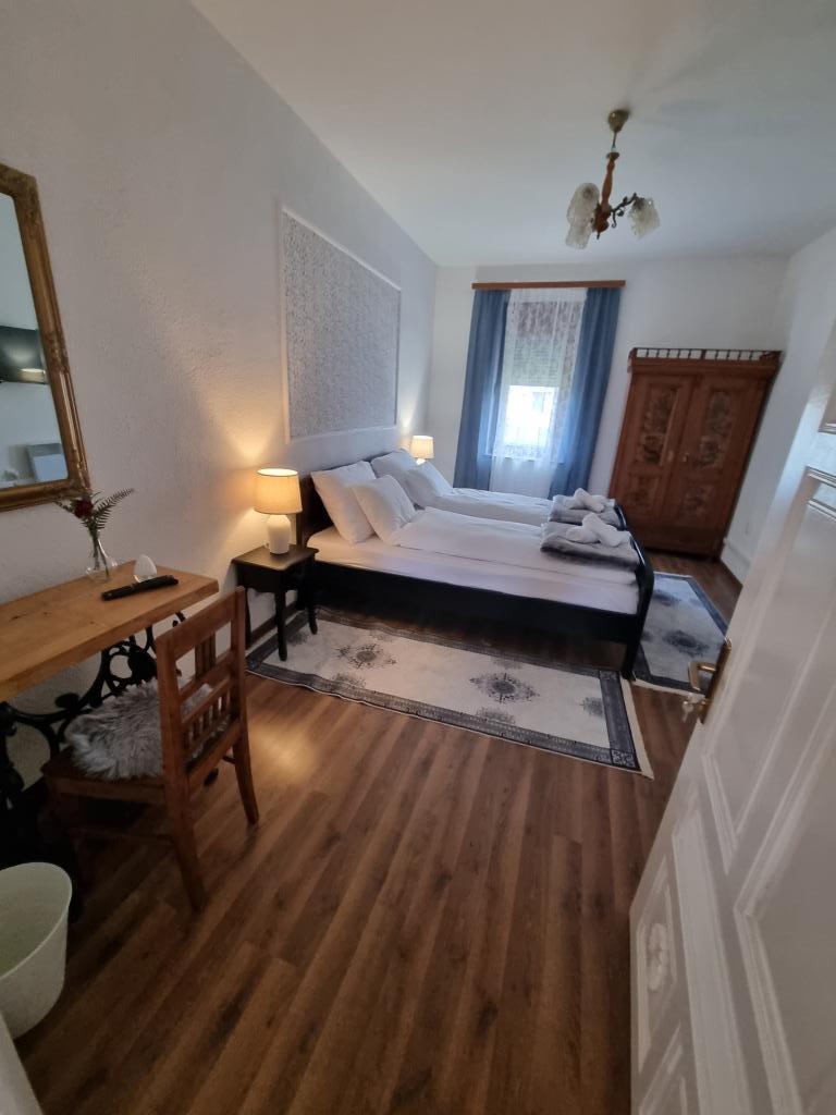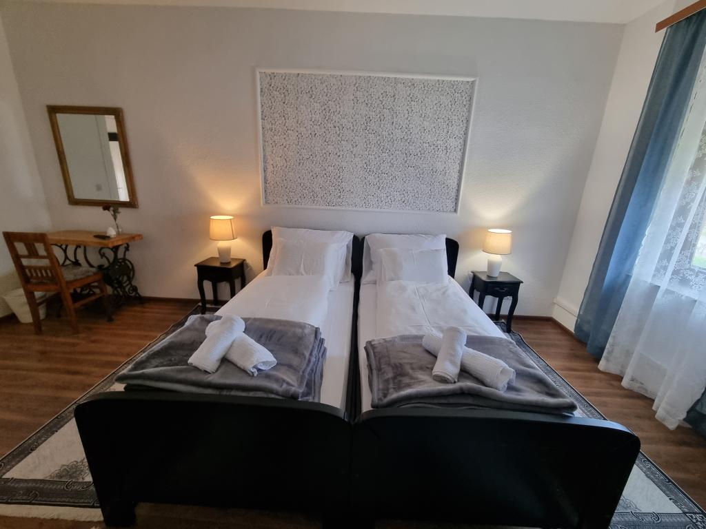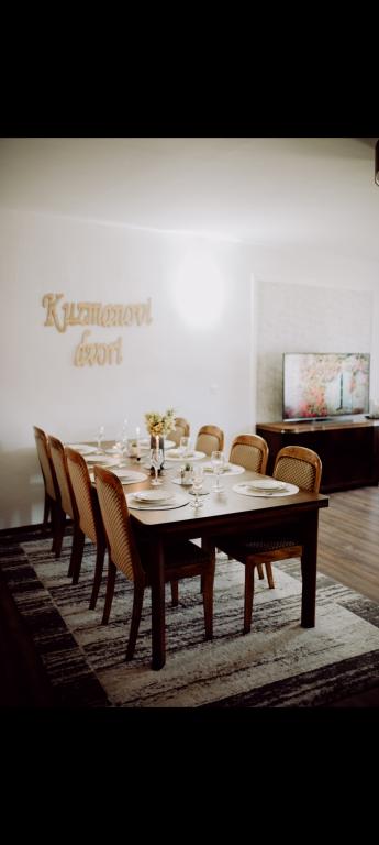Geniet van de honderd jaar oude schoonheid, het vakantiehuis "Kuzmanovi dvori". Deze schokkende villa heeft de tand des tijds volledig doorstaan. Hij staat nog steeds ongemakkelijk en maakt zijn korte haar los. De woning is geheel aangepast. Het heeft zijn oorspronkelijke uiterlijk behouden. Het interieur is aangepast aan de wensen van de moderne mens. De binnenplaatsen bestaan uit twee slaapkamers, een grote woonkamer met eetkamer, keuken en badkamer, evenals een inkomhal en een groot terras met zicht op de aangelegde binnentuin met originele architectuur. Het huis is ingericht met enkele originele meubels uit het familie-erfgoed en unieke, massieve en handgemaakte elementen. Een ruime woonkamer met een eetkamer geeft u de mogelijkheid om te ontspannen met een grote Android TV. De magie van een vuurtje in de open haard en een boek in je handen klinkt als een echte vakantie. Moderne en functionele keuken (koelkast, vriezer, gasfornuis, waterkoker, koffiezetapparaat), ruime badkamer met ligbad en wasmachine. Het huis heeft een onbeperkt wifi-netwerk en we hebben kabel-tv op alle drie de tv's in huis. Kom naar ons in Štitar en ervaar Slavonië, Shockadia in al zijn pracht en met al het comfort dat u nodig heeft voor uw vakantie.