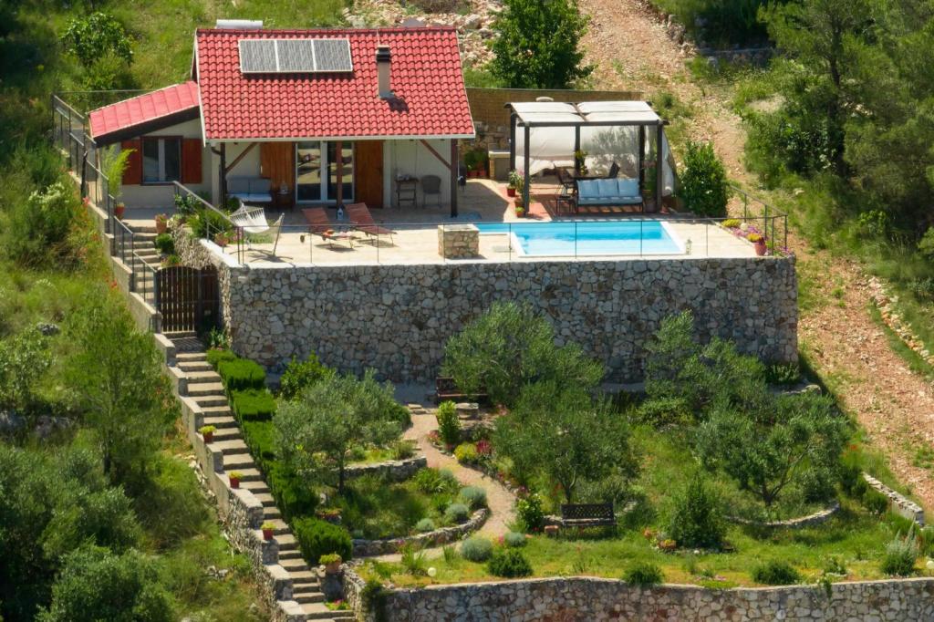 Dit kleine onweerstaanbare huis ligt in het dorp Bilice Vrulje, op slechts 15 minuten rijden van het centrum van Šibenik, maar ver genoeg van het lawaai en de drukte van de stad. De ligging maakt dit huis de perfecte keuze voor wie behoefte heeft aan rust in de natuur. En naast de locatie, zal het exterieur van deze charmante kleine villa u bevallen, evenals het sprookjesachtige, zorgvuldig ingerichte interieur. Het huis bestaat uit een keuken/eetkamer, een woonkamer, een badkamer, een slaapkamer en een slaapkamer op de galerij. De buitenruimte beslaat 100 m2; het terras met panoramisch uitzicht is de ideale plek om te genieten van de zonsondergang of om uzelf op te frissen in het zwembad. Daarnaast is er ook een pergola waar u kunt beschutten tegen de zon en kunt genieten van maaltijden bereid op de grill. En op slechts 5 minuten lopen ligt een privéstrand in de schaduw van een dennenbos. Er is een houten berging op het strand waar u uw spullen kunt opbergen terwijl u geniet van het zwemmen of peddelen in een kajak of SUP, die ook beschikbaar zijn. Het strand is ook met de auto te bereiken.