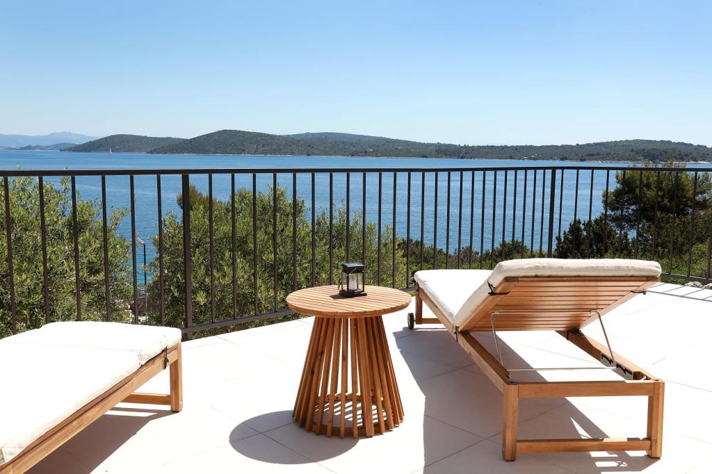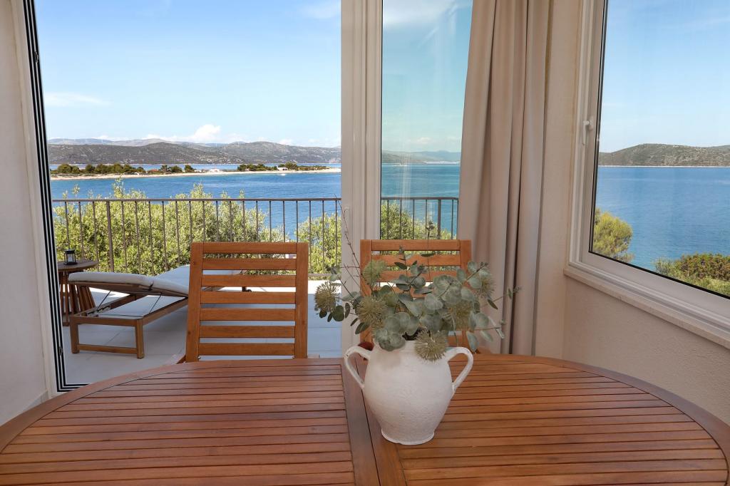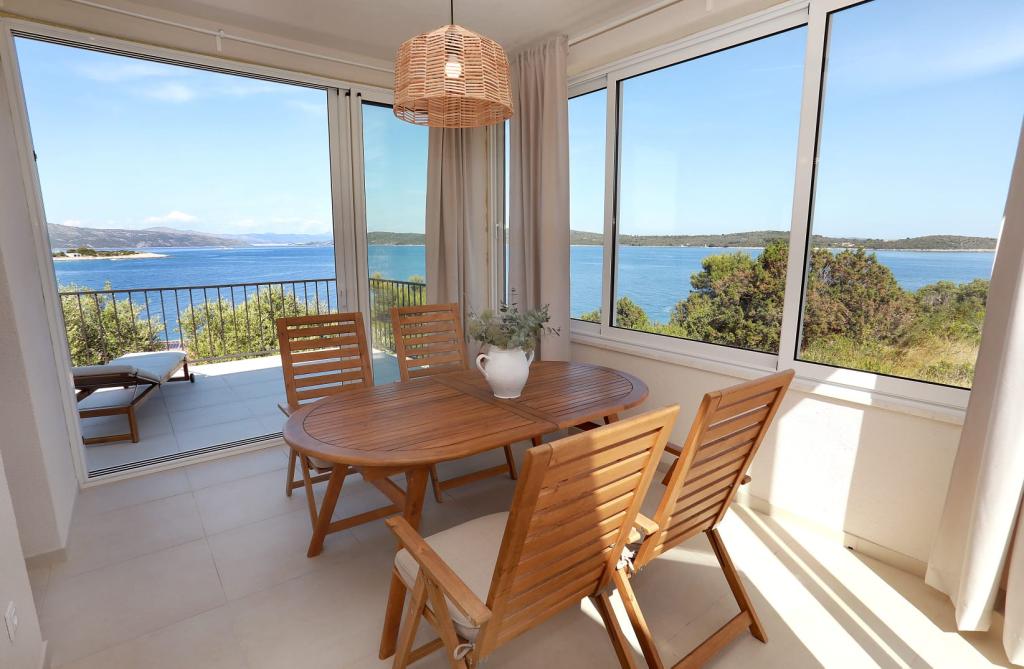 Inlusief wel Toeristenbelasting. Boekingsbevestigingsdocument bij reserveringRusso 2 is een zeer comfortabel en stijlvol ingericht huis in de natuur, met een groot, zonnig en panoramisch terras met prachtige zonsopgangen, waardoor u uitkijkt naar de vroege ochtenden. Enkele tientallen meters lager ligt een rustig privérotsstrand met gemakkelijke toegang tot het water. De baai is veilig en precies de juiste grootte om te zwemmen en te surfen. U kunt langs de kust of over de schilderachtige verhoogde paden wandelen. Het lange blauwe zandstrand van Vela Rina, dat 's ochtends en 's avonds vredig is, ligt op 10 minuten lopen langs olijfgaarden en door een interessant oud dorp. Ons verblijf op het eiland in september was erg rustig en vol ontdekkingen. Het huis is gezellig, uitstekend en zorgvuldig ingericht, zeer schoon en netjes, maar toch huiselijk. Een extra buitendouche, overdekt met een olijfboom, met uitzicht op zee, met de geur van lavendel en rozemarijn, is de mooiste badkamer, en natuurlijk is de binnendouche ook comfortabel en prachtig ingericht. De eigenaren Snježana en Siniša zijn buitengewoon vriendelijk, warm en gastvrij. Hoewel ze aan de overkant van de zee wonen, zijn ze altijd behulpzaam en weten ze hoe ze warme en vriendelijke verrassingen kunnen creëren. Als u van een rustige en comfortabele vakantie, natuur, vrij uitzicht op zee en kronkelende paden door mediterrane vegetatie houdt, raden we het ten zeerste aan. Drvenik Mali is een heel klein maar zeer charmant eiland, en het huis Russo 2 met uitzicht op zee is ook charmant.