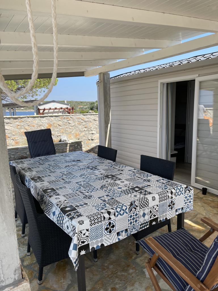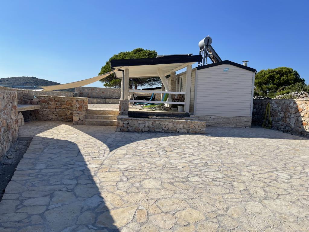 Modern ingerichte stacaravan met alle benodigde faciliteiten, op slechts 10 meter van de zee. Perfect om te genieten van de rust en het uitzicht op zee. Sprookjesachtige zonsondergangen op het ruime terras bij de zee zijn een ware oase van rust. Het huis bestaat uit twee tweepersoonskamers, een keuken met een eetkamer en een slaapbank, en een ruime, volledig uitgeruste badkamer. Het huis is uitgerust met zonnepanelen, airconditioning, magnetron, koelkast met vriesvak, buiten- en binnendouche, gasgrill. Stromend water uit de stortbak. Water en elektriciteit moeten spaarzaam worden gebruikt. Toegang tot het huis is mogelijk met de auto en het heeft een eigen gratis parkeergelegenheid. Een ruime tuin van 200m2 met een eigen toegang tot de zee. Op 500m van het huis is er een uniek zandstrand Vela Rina waar een strandbar en een taverne zijn.