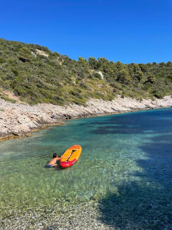 De keuken is volledig uitgerust met servies en basisapparatuur. Daarnaast is er zout, peper, olie, azijn en een paar liter flessenwater aanwezig. Er is ook afwasmiddel, schoonmaakmiddelen, handzeep en toiletpapier. Er groeien kruiden in de buurt van het huis (rozemarijn, venkel, laurier, salie, munt en andere aromatische Dalmatische kruiden). Uiteraard liggen beddengoed, dekens en handdoeken voor u klaar. Voor wie van een actievere vakantie houdt, is er ook een stand-up paddleboard (SUP).