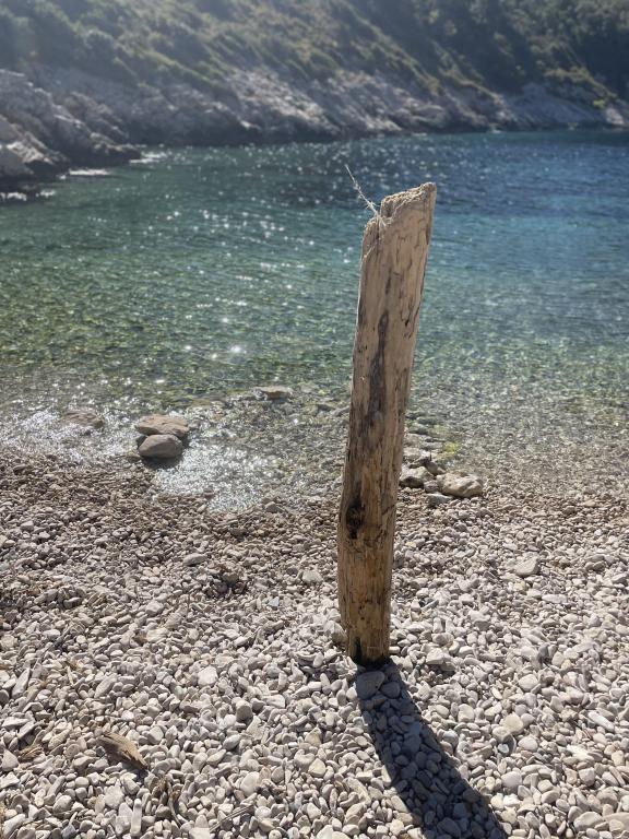 Het huis ligt in een rustige baai met een kiezelstrand, omgeven door ongerepte, idyllische natuur en de geuren van inheemse mediterrane aromatische kruiden. Er is geen weg naartoe – de auto staat geparkeerd op ongeveer 300 meter afstand en vanaf de parkeerplaats is het tien minuten lopen naar het huis over een geitenpad. Het huis heeft 4 slaapplaatsen. De elektriciteit wordt opgewekt door zonnepanelen en is voldoende voor de koelkast, verlichting en het opladen van mobiele telefoons, laptops en andere gangbare apparaten. Water komt uit een reservoir en kan worden gebruikt om te koken en te douchen. Bij aankomst staat er een paar liter drinkwater voor u klaar in het huis, de rest kunt u gemakkelijk kopen in winkels op het eiland. De keuken is uitgerust met een gasfornuis en een open haard die ook gebruikt kan worden om te grillen. Koken vindt u echter het meest in de buitenkeuken met uitzicht op zee en de omliggende natuur. Omdat dit het enige huis in de baai is, genieten onze gasten hier van rust en stilte, terwijl ze op slechts ongeveer 50 minuten varen met de veerboot alle voorzieningen en de stedelijke sfeer van Split bereiken.
