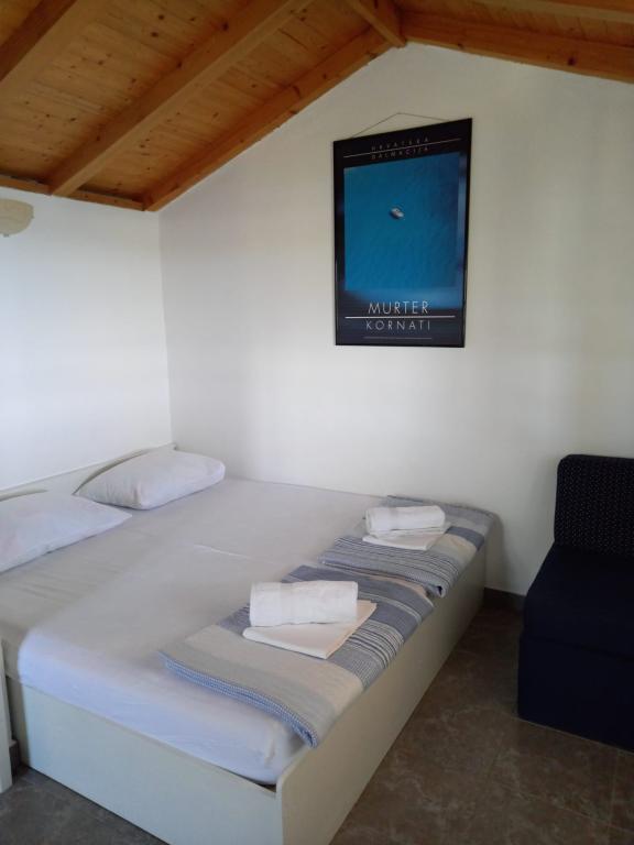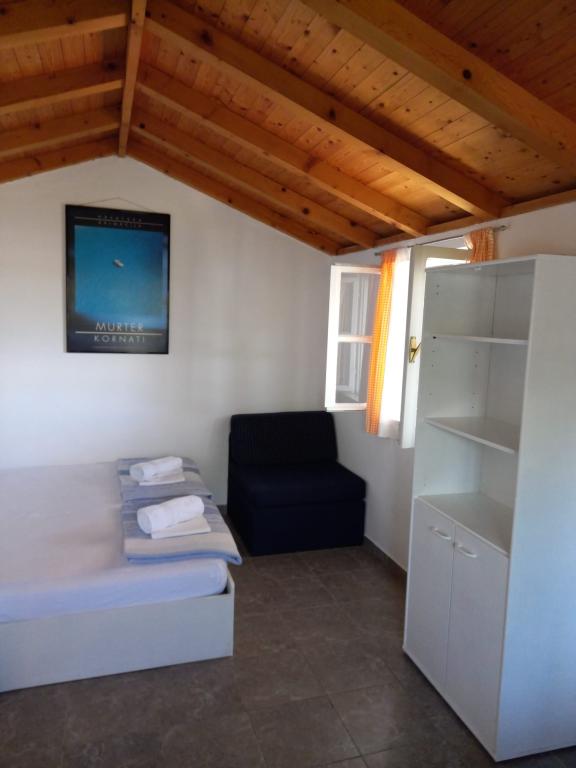 Het vissershuis met prachtig uitzicht op zee ligt op een uitstekende locatie op slechts 30 meter afstand van de zee. Het vissershuis heeft zonnepanelen waaruit elektriciteit wordt gewonnen (kleinere apparaten kunnen worden gebruikt). Het water is goed om te douchen (uit de waterleiding of regenwater), verwarmd door de zon. Er is voldoende water als het rationeel wordt gebruikt. Het vissershuis heeft een oppervlakte van 25 m2. Het studio-appartement is geschikt voor 2 volwassenen. Het heeft een woonkamer. Er is een extra bed voor één persoon. Het heeft een badkamer met een douche. De oppervlakte van het balkon/terras bedraagt 15 m2. Parkeren is mogelijk en bij de prijs inbegrepen. Er is een buitengrill die gebruikt kan worden. Het vissershuis ligt op ongeveer 1500 meter afstand van het stadscentrum en op 30 meter afstand van de zee of het eerste strand van Murter. Huisdieren zijn toegestaan tegen een extra vergoeding. Het appartement ligt op een uitstekende locatie aan zee en vanaf het terras kunt u genieten van het uitzicht op Kornati en prachtige zonsondergangen. Het ligt op slechts 5 minuten lopen van de baai en het strand "Čigrađa". Het stadscentrum ligt op 30 minuten lopen. De eerste winkel ligt op 20 minuten lopen. Gratis en beveiligd parkeren.