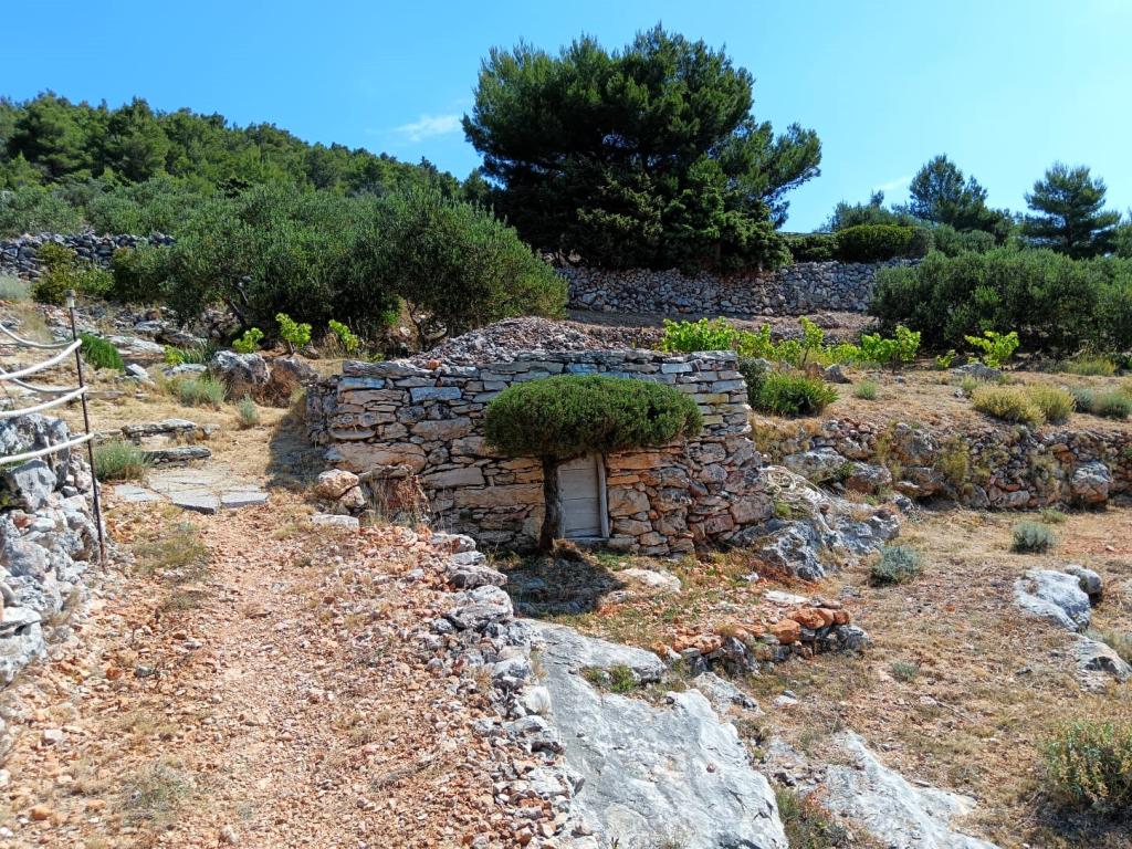 Huis Ljubica ligt aan de zuidwestkant van het eiland Murter in de baai van Velika Doca, midden in de natuur in een gerestaureerde olijfgaard, ver weg van beton en asfalt, met uitzicht op de Kornati-eilanden, op 40 meter van de kristalheldere Adriatische Zee. Wilt u ontsnappen aan het dagelijkse lawaai van auto's en lawaaiige cafés en in alle rust de zonsondergang bewonderen? Dan is dit de juiste plek voor u. Dit is een plek waar u de zon kunt zien opkomen en ondergaan, waar u de sterrenhemel kunt bewonderen zonder lichtvervuiling, en waar de open zee zich uitstrekt van de eilanden Kaprija en Žirje tot aan de Kornati-eilanden. Het ligt op 15 minuten lopen van uw auto en wordt omgeven door prachtige rotsstranden waar u kunt zwemmen en duiken in de kristalheldere zee. Hier is uw vakantie gegarandeerd.