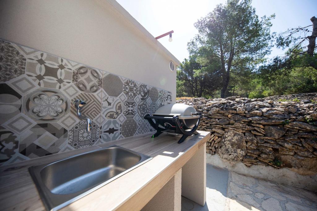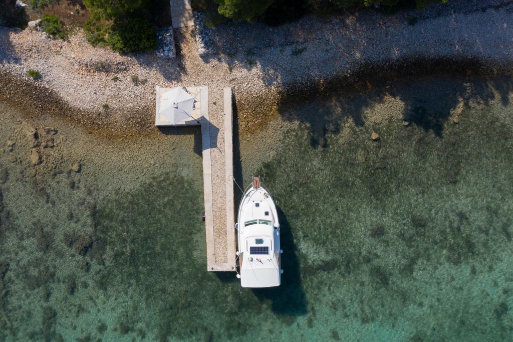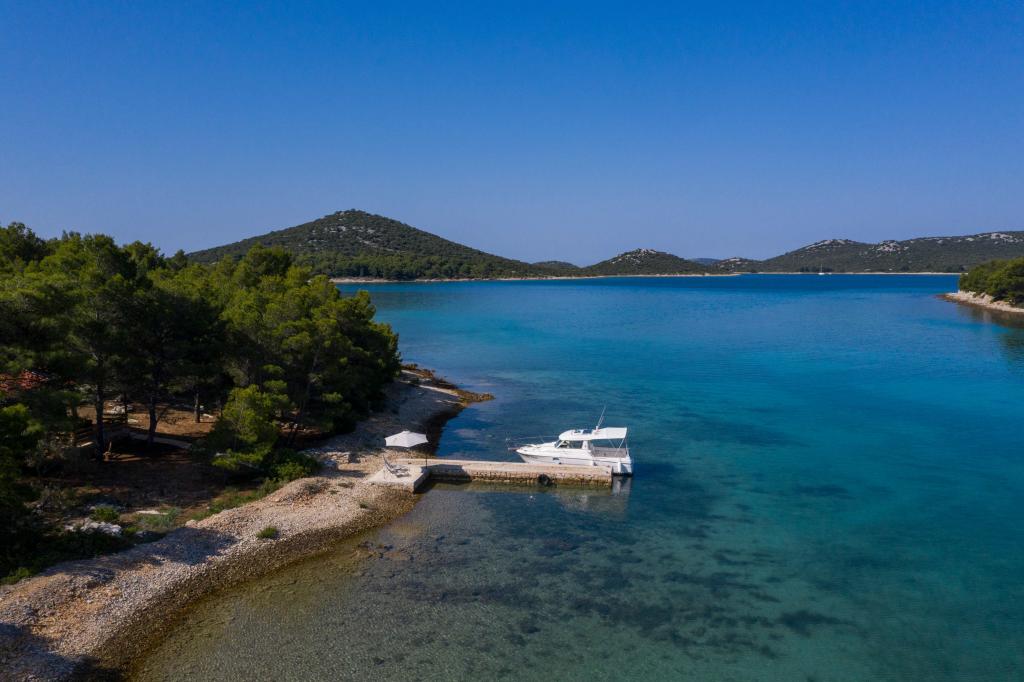 Sea House Modrave ligt in de baai van Zečica, op 15 minuten van Murter. Het ligt op 10 meter van de zee en heeft een eigen aanlegsteiger. Het complex is alleen per boot bereikbaar. Er is gratis parkeergelegenheid in Murter, evenals een transfer naar het huis. Het huis heeft een slaapkamer met een tweepersoonsbed, een badkamer met douche en een slaapbank voor twee extra personen. De keuken is voorzien van een koelkast met vriezer en een gasfornuis. Het beschikt over een tv met satellietontvanger, internet met wifi en airconditioning. Het huis wordt van stroom voorzien door zonne-energie en regenwater, wat voldoende is bij rationeel gebruik. Huisdieren zijn toegestaan en betalen € 5 per dag.