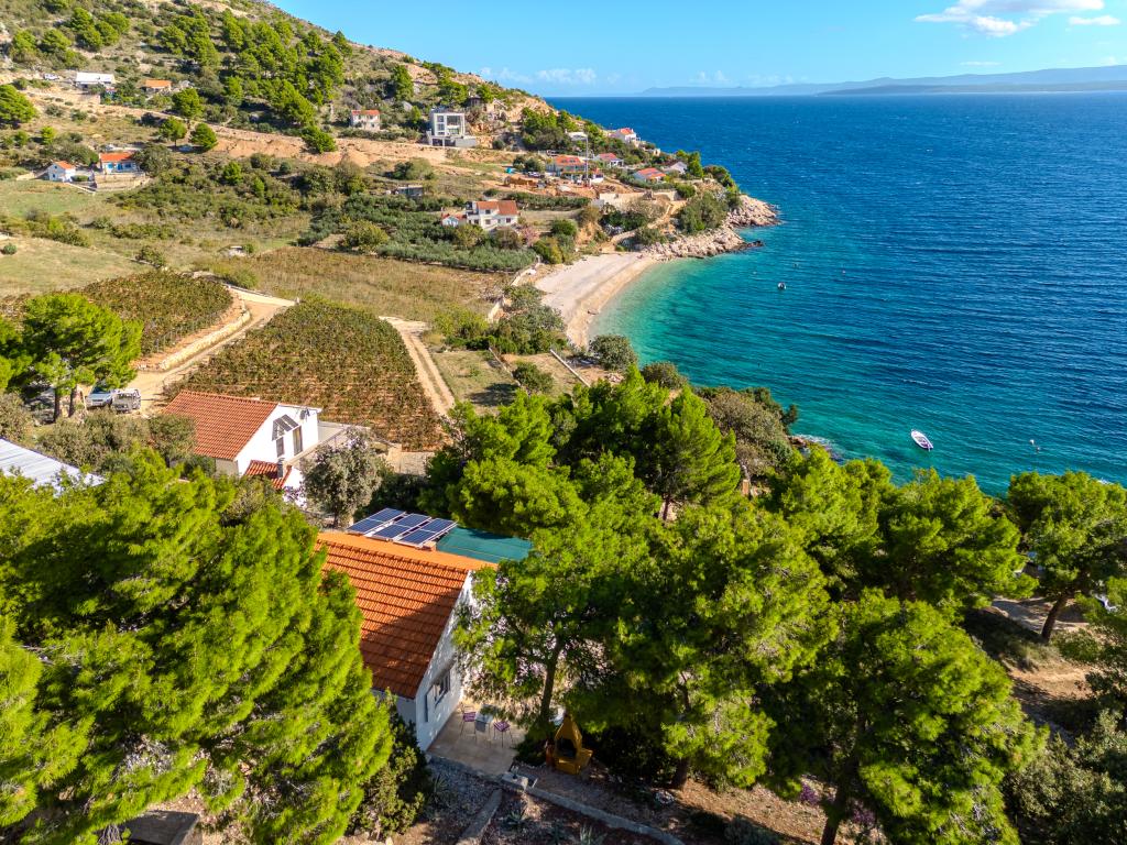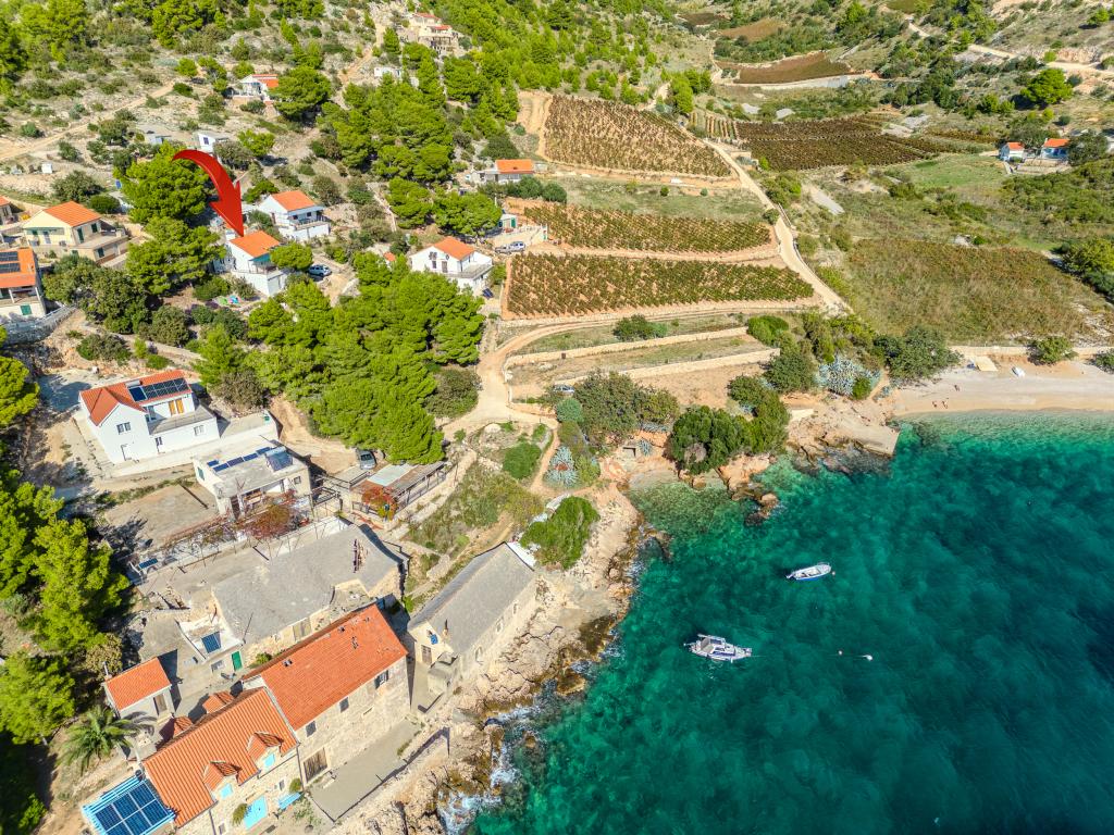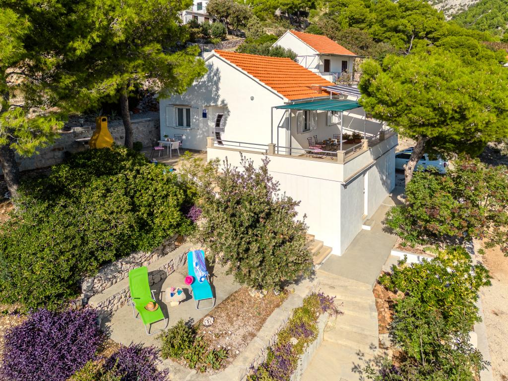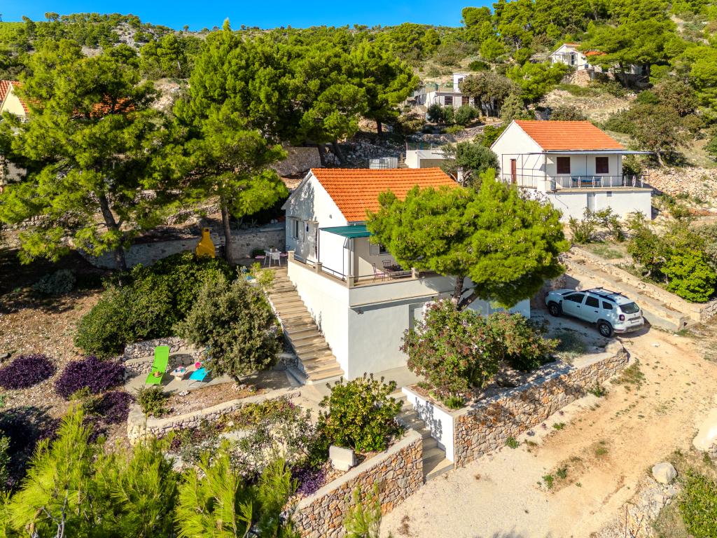 Uw rust en plezier vindt u in een rustige omgeving, groen landschap, schone zee en onderwaterdieptes die uw vakantie tot een onvergetelijke ervaring zullen maken. Het huis ligt in een rustige baai in een dennenbos, op 80 meter afstand van het strand. Vanaf het ruime terras zie je het lange kiezelstrand, de zee en het eiland Hvar. Het huis heeft twee slaapkamers, een keuken met een eethoek, een toilet met douche en warm water, en een terras met zitmeubelen en een barbecue. Het huis is uitgerust met een zonne-energiecentrale 220 V, 500 W. Het laatste deel van de weg naar het huis is een macadamweg in de lengte van 1, 1 km. Ontspan in onze Eddie Robinson-accommodatie, ver weg van drukte en lawaai.