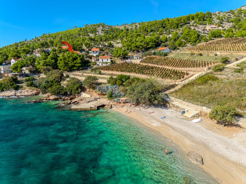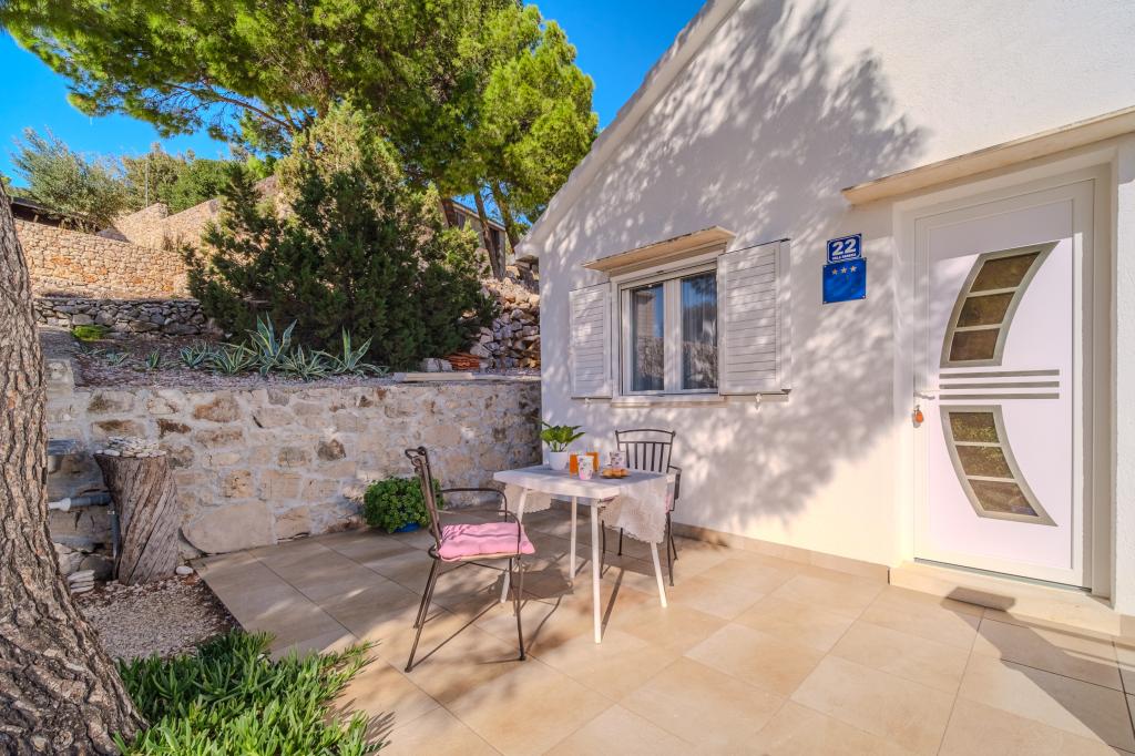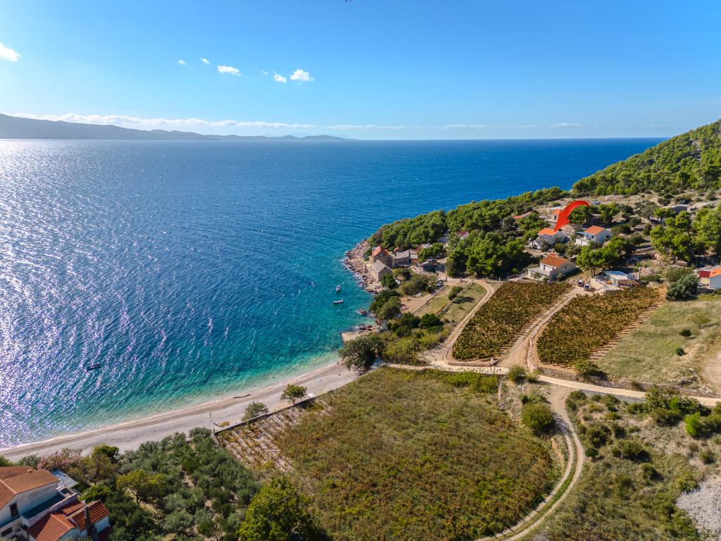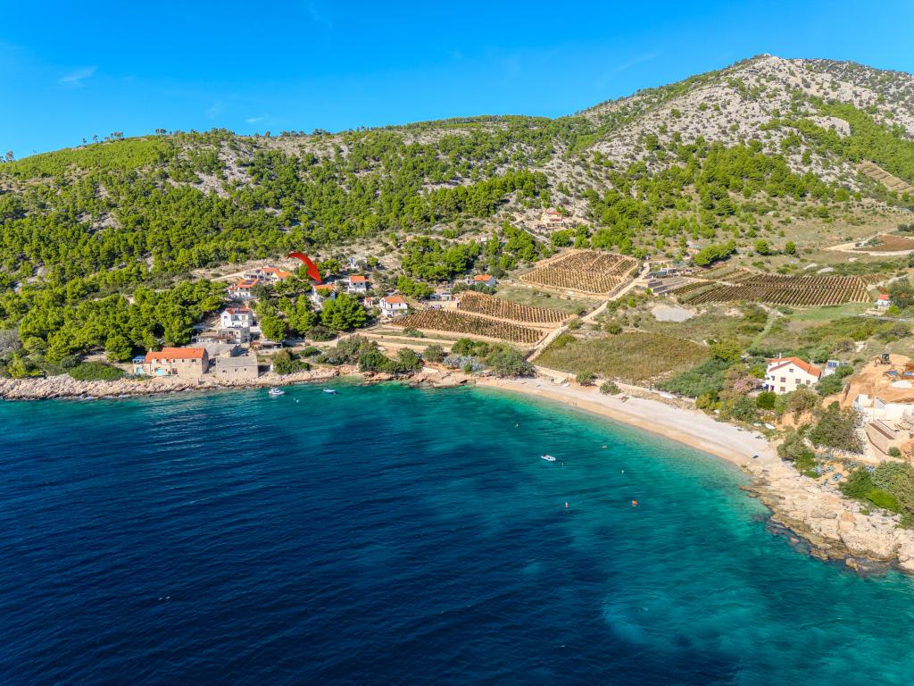 Uw rust en plezier vindt u in een rustige omgeving, groen landschap, schone zee en onderwaterdieptes die uw vakantie tot een onvergetelijke ervaring zullen maken. Het huis ligt in een rustige baai in een dennenbos, op 80 meter afstand van het strand. Vanaf het ruime terras zie je het lange kiezelstrand, de zee en het eiland Hvar. Het huis heeft twee slaapkamers, een keuken met een eethoek, een toilet met douche en warm water, en een terras met zitmeubelen en een barbecue. Het huis is uitgerust met een zonne-energiecentrale 220 V, 500 W. Het laatste deel van de weg naar het huis is een macadamweg in de lengte van 1, 1 km. Ontspan in onze Eddie Robinson-accommodatie, ver weg van drukte en lawaai.