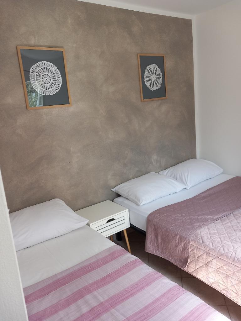Het vakantiehuis ligt op het eilandje Žižanj, dat tegenover het eiland Pašman ligt. De capaciteit van dit huurhuis is 6 personen. De woning beschikt over twee aparte slaapkamers, één met een tweepersoonsbed en de andere met een tweepersoonsbed en een eenpersoonsbed. In de keuken staat nog een eenpersoonsbed, een koelkast en een gasfornuis. Beddengoed, handdoeken en theedoeken liggen voor u klaar en na elke week worden er schone handdoeken verstrekt. Huisdieren zijn op aanvraag en tegen een toeslag welkom. U parkeert uw voertuig op de parkeerplaats in de baai van Druce op het eiland Pašman. Vervoer van de parkeerplaats naar het huis, eenmaal bij aankomst en eenmaal aan het einde van uw verblijf, is gratis. Elektriciteit van 220 V wordt opgewekt met zonne-energie. Het is niet toegestaan om uw eigen elektrische apparaten mee te nemen en te gebruiken, met uitzondering van opladers voor mobiele telefoons en laptops. In de keuken en de badkamer is stromend koud water geïnstalleerd. De buitendouche is voorzien van een zwarte container (de warmte van de zon verwarmt het water in de container).