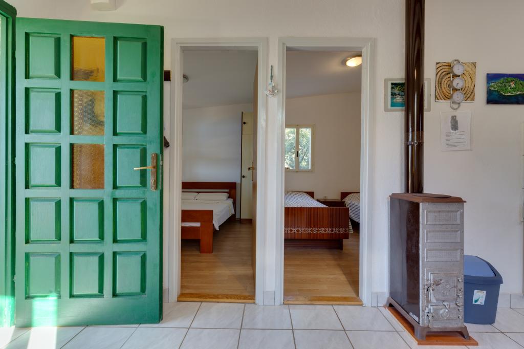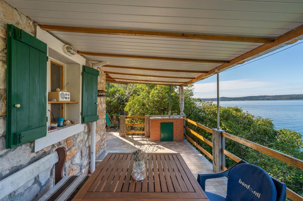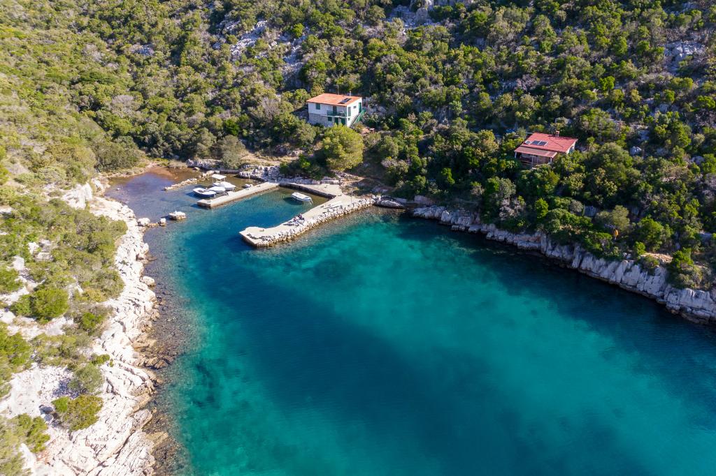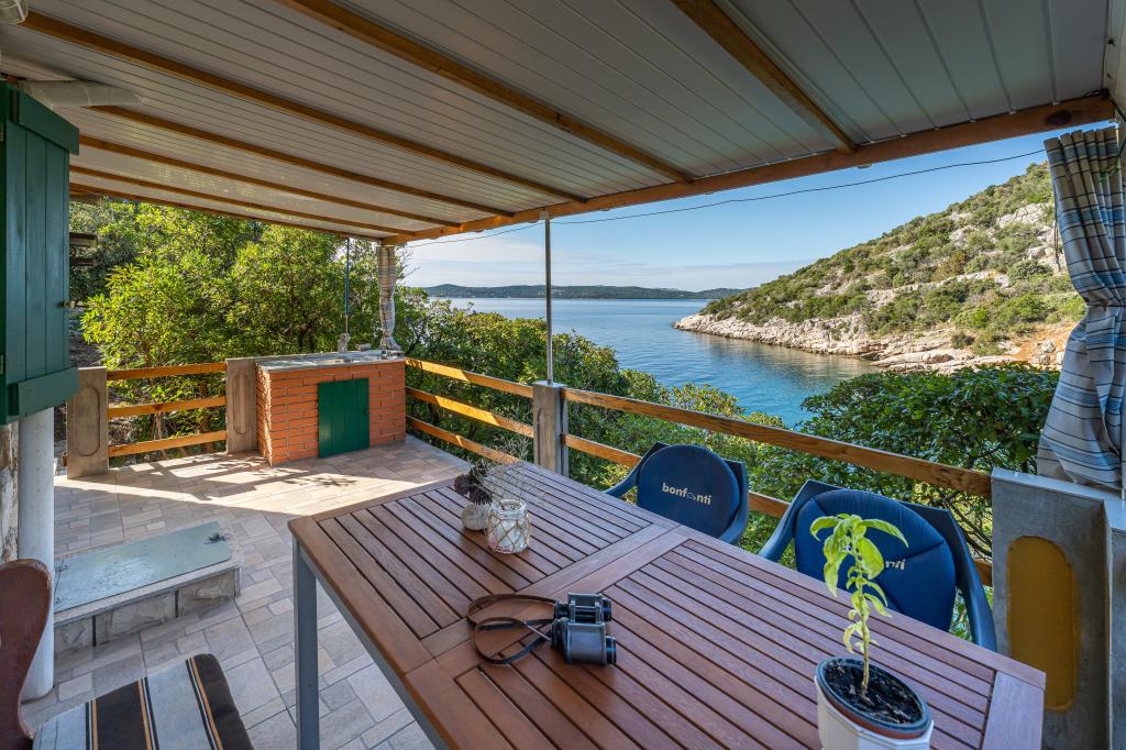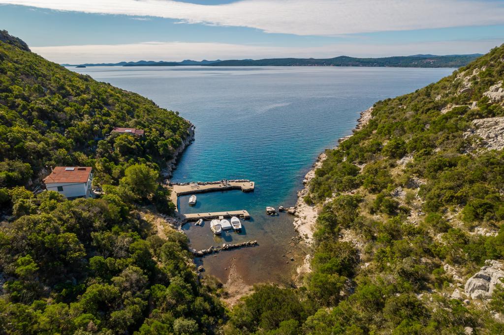 Het huis is gelegen op het eiland Ugljan in een kleine beschermde baai. Het heeft een terras met uitzicht op het zuidwesten en het eiland Iž. Er loopt een weg naar het huis, en aan het einde van de witte weg parkeer je je auto en dan heb je nog eens 10 minuten lopen over het pad. Het huis beschikt over water en een alternatieve energiebron, d.w.z. zonne-energie van 12 V. Mogelijkheid om kleine verbruikers zoals mobiele telefoons etc. op te laden. Het huis is ideaal voor het huisvesten van 2 personen. De ligging van het huis is zodanig dat u zich volledig vrij voelt in de natuur en kunt genieten van een rustige vakantie. Heeft u een boot of een speedboot, dan beschikt u ook over een ligplaats en kunt u uw verblijf naar wens inrichten.