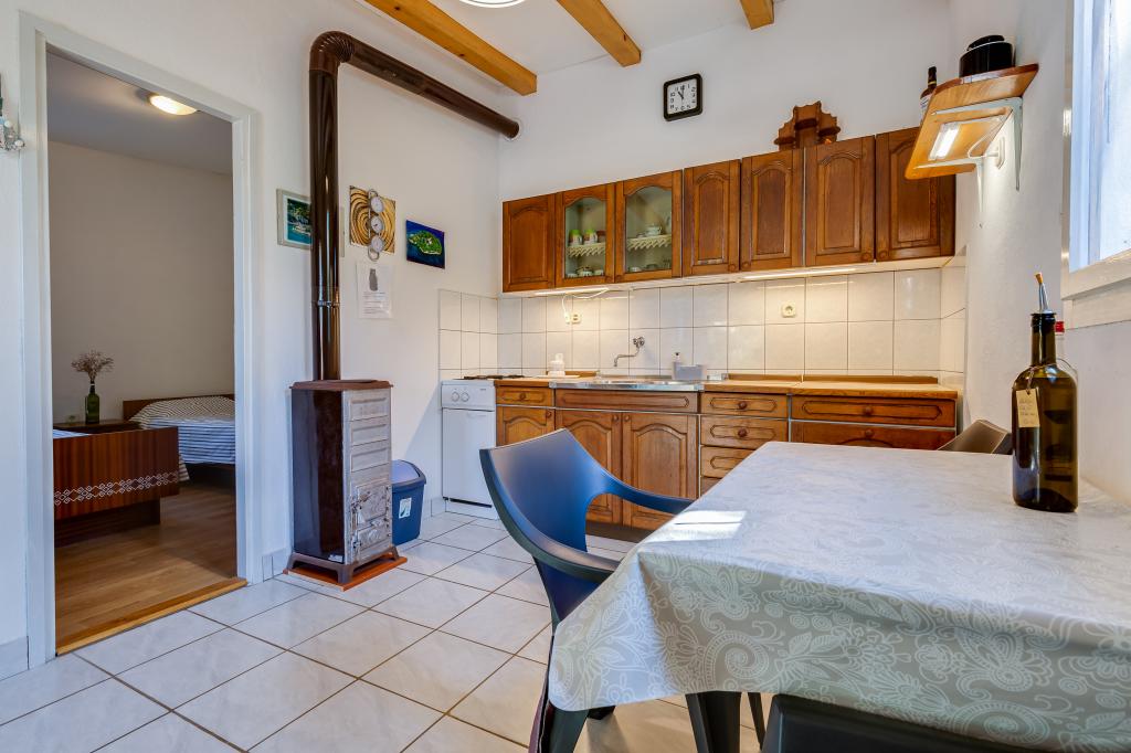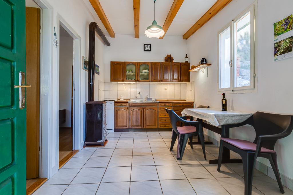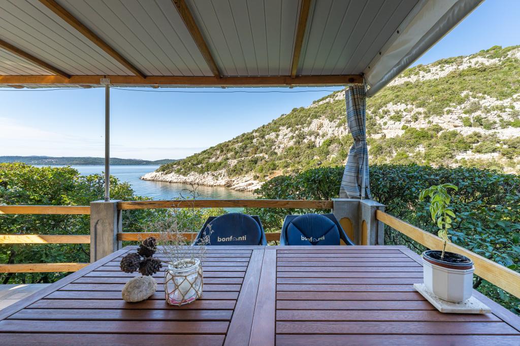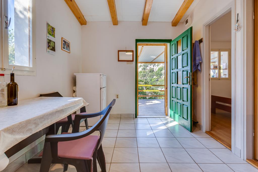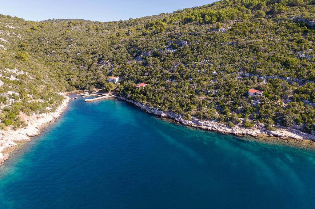 Het huis is gelegen op het eiland Ugljan in een kleine beschermde baai. Het heeft een terras met uitzicht op het zuidwesten en het eiland Iž. Er loopt een weg naar het huis, en aan het einde van de witte weg parkeer je je auto en dan heb je nog eens 10 minuten lopen over het pad. Het huis beschikt over water en een alternatieve energiebron, d.w.z. zonne-energie van 12 V. Mogelijkheid om kleine verbruikers zoals mobiele telefoons etc. op te laden. Het huis is ideaal voor het huisvesten van 2 personen. De ligging van het huis is zodanig dat u zich volledig vrij voelt in de natuur en kunt genieten van een rustige vakantie. Heeft u een boot of een speedboot, dan beschikt u ook over een ligplaats en kunt u uw verblijf naar wens inrichten.
