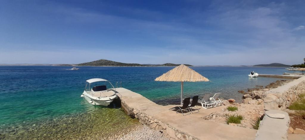 Robinson House Dupin ligt op het eiland Pašman. De accommodatie ligt op 15 meter van de zee en biedt een prachtig uitzicht op de Kornati-archipel. Het huis heeft 3 slaapkamers met tweepersoonsbedden. Het huis is geschikt voor maximaal 6 personen. De keuken is uitgerust met servies, bestek, een kookplaat en een vaatwasser. De koelkast heeft een inhoud van 220 liter en een inhoud van 109 liter. De watertank heeft een capaciteit van 16.000 liter. De elektriciteit is 220V en wordt opgewekt met zonne-energie. Het is echter niet mogelijk om andere huishoudelijke apparaten te gebruiken, behalve opladers voor mobiele telefoons en verlichting. In de keuken en de badkamer is warm en koud water geïnstalleerd. Buitendouche voorzien van een zwarte boiler, verwarmd door de zon. Water en elektriciteit dienen hier spaarzaam gebruikt te worden. Het water is drinkbaar als de tank gevuld is. Omdat het water echter in de zomer bij hoge temperaturen in de tank blijft staan, moet u het water eerst koken als u het wilt drinken. Het huis is met de auto bereikbaar op ongeveer 500 m afstand en er is gratis parkeergelegenheid.