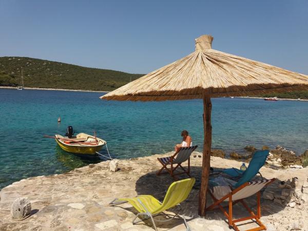 We hebben weer geweldige tijd doorgebracht in dit huis. Als u op zoek bent naar rustige, ontspannende tijd buiten het toerisme, moet u nog steeds terug naar de beschaving (30 minuten rijden), goede keuze. Slechts een paar stappen van de zee, makkelijke toegang tot het water, mooie "Hawaian style paraplu " geeft je schaduw tijdens je verblijf aan de zee. En als je van koud drankje van de koelkast wilt genieten, heb je maar 30 seconden nodig om het uit de koelkast te halen. Ik beveel aan om met de eigenaar te komen tot de volgende baai (Zizanj) en gebruik de restaurantpijler van de plaats om uw tassen uit de auto te verplaatsen door de boot van de eigenaar en gebruik deze manier om van de dichtstbijzijnde grond naar het huis te komen. Betekent dat je zakken in je handen slechts 50m nodig hebt. Groot voordeel van buitendouche - je hoeft het binnenhuis niet te gebruiken, leuk om buiten te douchen en naar de zee te kijken. 2e aanbeveling - gebruik alleen de gas koelkast, anders stopt u met elektriciteit, maar het is groot genoeg om alle voedselbehoeften op te bergen. Eigenaar zeer vriendelijk en behulpzaam. Als u activiteiten wilt - breng iets als een (supbord) of een mountainbike voor een fijne ochtendrit door het eiland. Fiets kan ook gebruikt worden om naar Tkon te gaan winkelen.