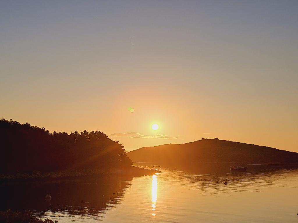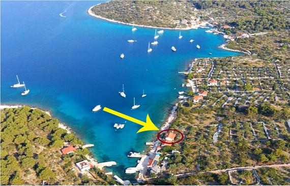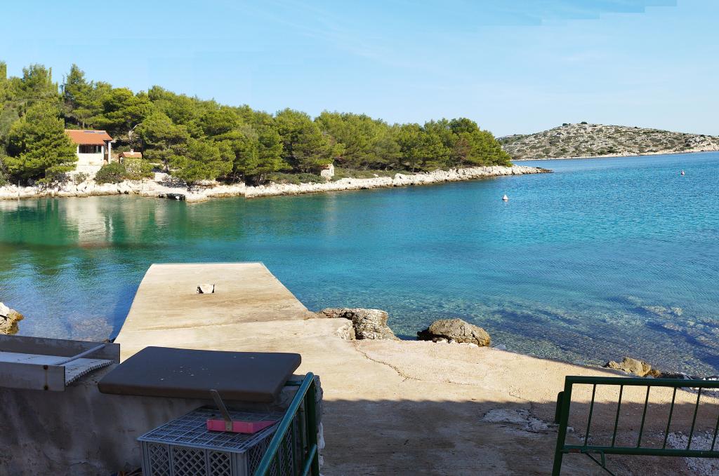 Volledig uitgeruste accommodatie met 12V elektriciteit en zonnepanelen. Gelegen op het eiland Žut, in de baai van Dragišina. Het beschikt over twee kamers, een keuken, een berging en een badkamer, een grote tuin met olijfbomen, een terras, een barbecue en een buitendouche.