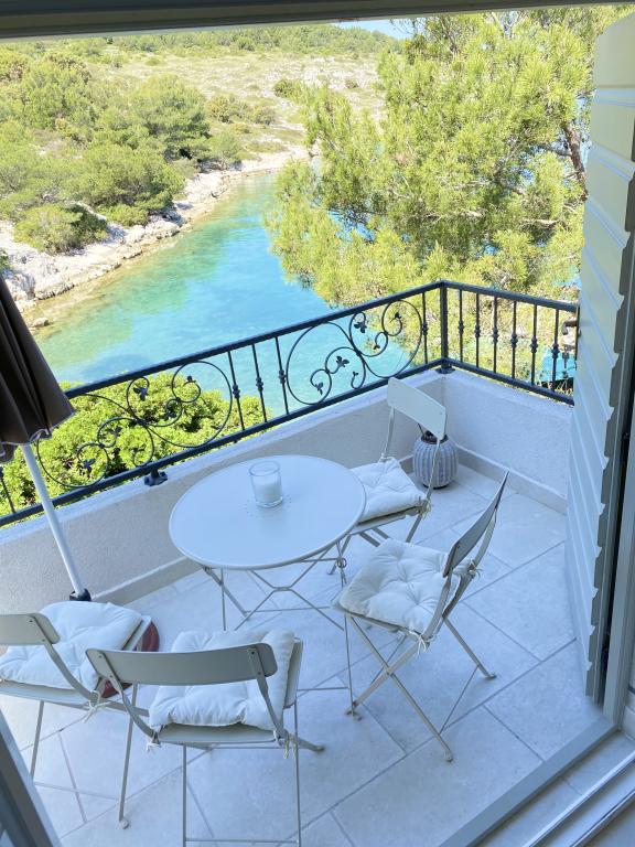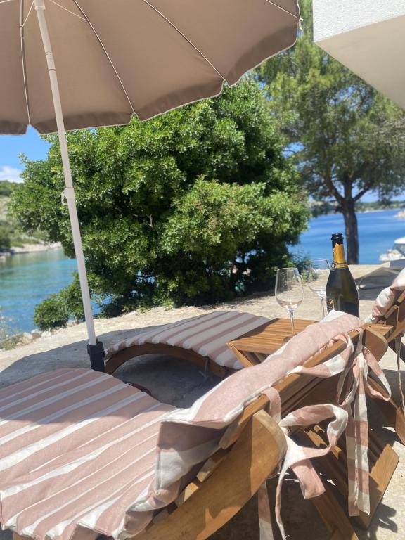 Het nieuw gebouwde vakantiehuis "Levina" ligt in een oase van groen en rust, een perfecte plek voor ontspanning en plezier. Het is ingericht in landelijke stijl. Het ligt op 10 meter van de zee in de baai. Het balkon biedt een prachtig uitzicht op zee. De baai is vol groen, het is afgelegen, u voelt zich afgezonderd van de wereld, overweldigd door rust en schoonheid. Er zijn slechts een paar andere huizen in de baai. Het huis heeft twee slaapkamers, een badkamer met douche, een balkon met een prachtig uitzicht en een buitenterras met een barbecue. Het huis is uitgerust met een mobiele airconditioning en een ventilator. Figuurlijk gesproken is water op het eiland goud waard, dus het moet rationeel gebruikt worden. Het water komt uit natuurlijke bronnen, regenwater. Het water is niet bedoeld om te drinken, maar om te douchen en te wassen. Toprestaurants, ACI Marina en een markt bevinden zich in de aangrenzende baai. U kunt er in ongeveer 20 minuten langs de rotsen of per boot komen. U bevindt zich letterlijk aan de ingang van het Nationaal Park Kornati. Het beste kunt u boodschappen en drinkwater kopen in de vertrekhaven.