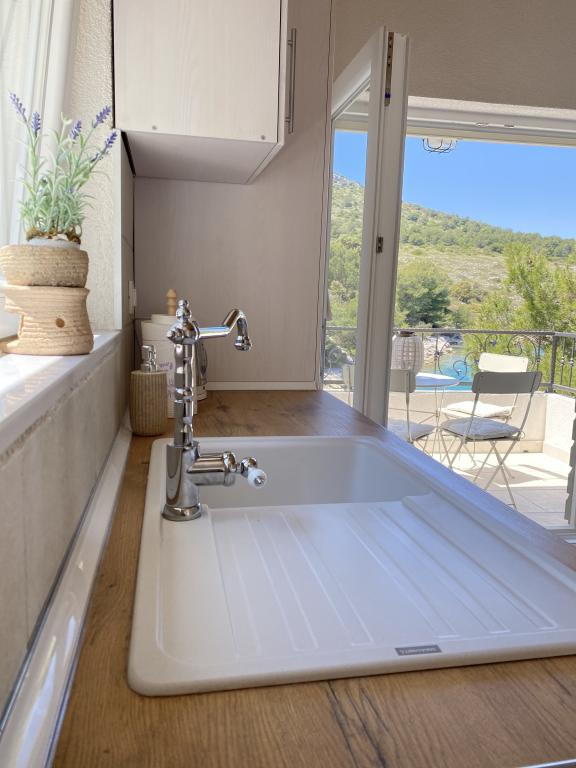 De locatie en het huis zijn geweldig. Ik kan zeggen dat het een zeer comfortabele Robinson is, want het huis is praktisch nieuw en erg mooi ingericht... de foto's zijn wat je te wachten staat. Als kleine reserveoptie kun je een 15 minuten durende roeiboottocht maken naar de winkel in de jachthaven of 700 meter langs de kust langs de rotsen lopen, en er is al een pad. Er staan 6 huizen in de baai, maar dit is het enige dat te huur is en we waren er alleen. Je hebt zelfs warm water in de douche en de roeiboot... kortom, alles wat je nodig hebt en erg aardige, vriendelijke eigenaren die je met een snelle boot naar de locatie brengen.