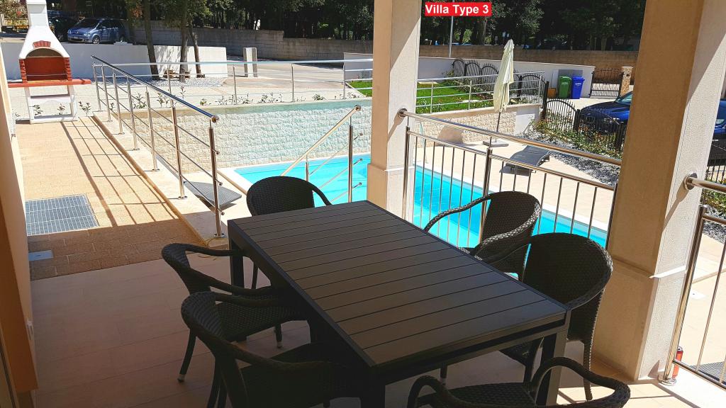Er zijn 3 soorten villa's waaruit u kunt kiezen. Alle villa's hebben hetzelfde interieur, u hoeft alleen Villa Type 1, Type 2 of Type 3 te kiezen! De villa biedt plaats aan maximaal 8 plus 2 gasten. Er zijn 4 slaapkamers in de Villa, elk met een eigen badkamer. Ontspan in de gezellige woonkamer en bereid heerlijke maaltijden in de volledig uitgeruste keuken met eetkamer. U kunt ontspannen bij uw privézwembad, op de ligstoelen liggen en genieten van de schoonheid van de zon. Op de houtskoolgrill bereid je ook specialiteiten voor je vrienden en familie. Als je naar het strand wilt, neem dan gewoon een handdoek mee en je bent in een paar minuten lopen op het strand, maar er zijn ook geweldige restaurants op loopafstand. De villa is voorzien van airconditioning, heeft WiFi, een eigen parkeerplaats voor 3 auto's en biedt alles voor een fijne vakantie.