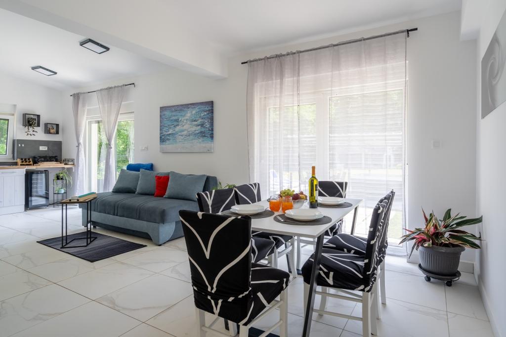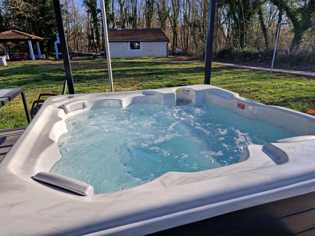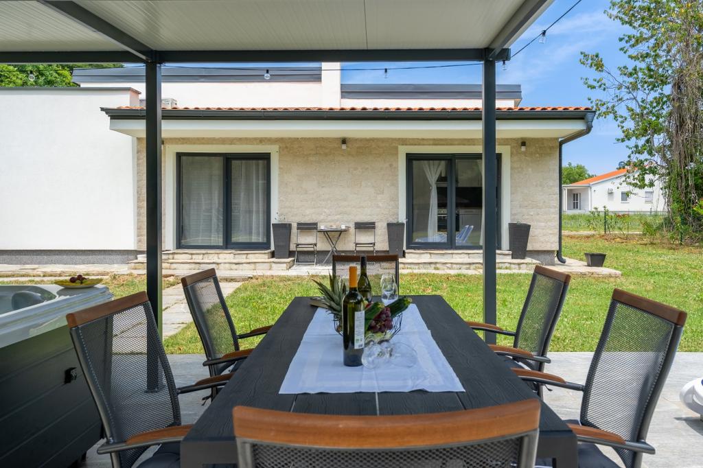 Stel je voor dat je wakker wordt door de zonnestralen en het gezang van vogels in de omringende bomen, terwijl je ontspant en geniet van de jacuzzi (massagebad). In volledige privacy kun je comfortabel op een ligstoel zitten en je eerste ochtendkoffie of -thee drinken. Een ideale locatie voor gasten die graag willen ontspannen en genieten van een groene, zonnige oase. U bent ongeveer 10 minuten rijden verwijderd van schone, kleine stranden. Onze gasten kunnen gratis gebruikmaken van een SUP-board. Prachtig nieuw gebouwd vakantiehuis met een grote tuin van 1300 m2. 2 buitenterrassen om van de zon te genieten, een prieel met schaduw om te genieten, jacuzzi, badmintonuitrusting, privé gratis parkeerplaats in de schaduw. Het huis bestaat uit 3 slaapkamers (elke kamer is voorzien van airconditioning), 2 badkamers en een wasmachine, een grote woonkamer met airconditioning en een ingerichte keuken met een vaatwasser. U bevindt zich op 20 minuten van de luchthaven van Pula en op 25 minuten van het Romeinse amfitheater in het centrum van Pula. Het Nationaal Park Brijuni en de stad Rovinj liggen op ongeveer 30 minuten afstand.